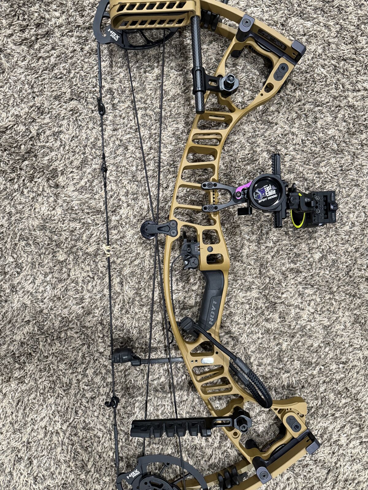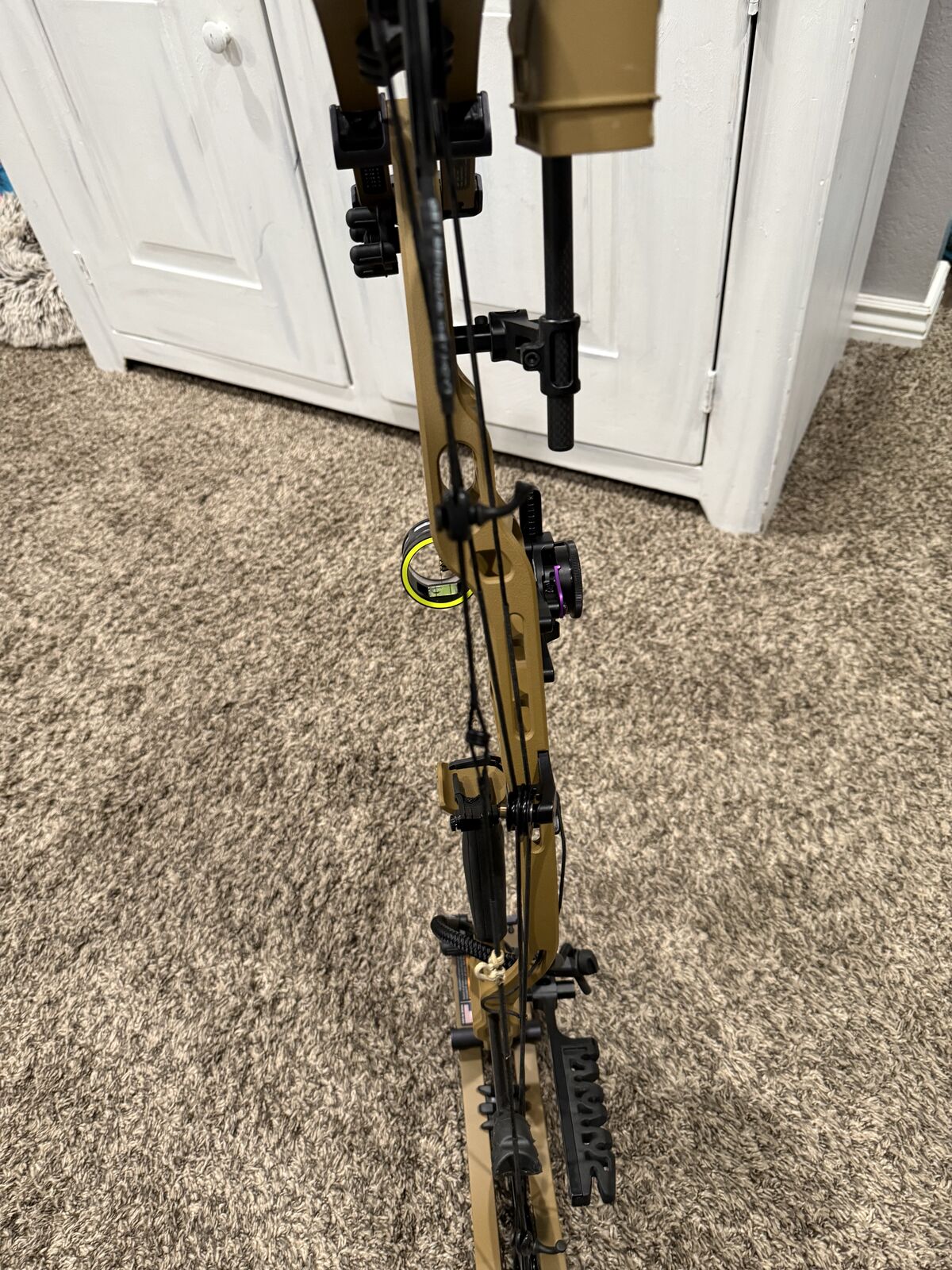 Great bow. Shot maybe 50 times, everything is new. Fast Eddie sight. Hoyt super lite quiver and ultra rest. Riddance 8" stablizer. Loose goose release. 36 fully fletched nock on axis pro arrows. Arrow and bow case included.
