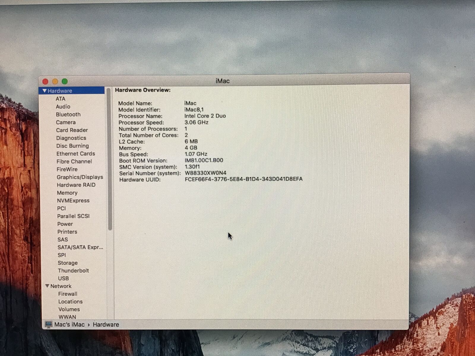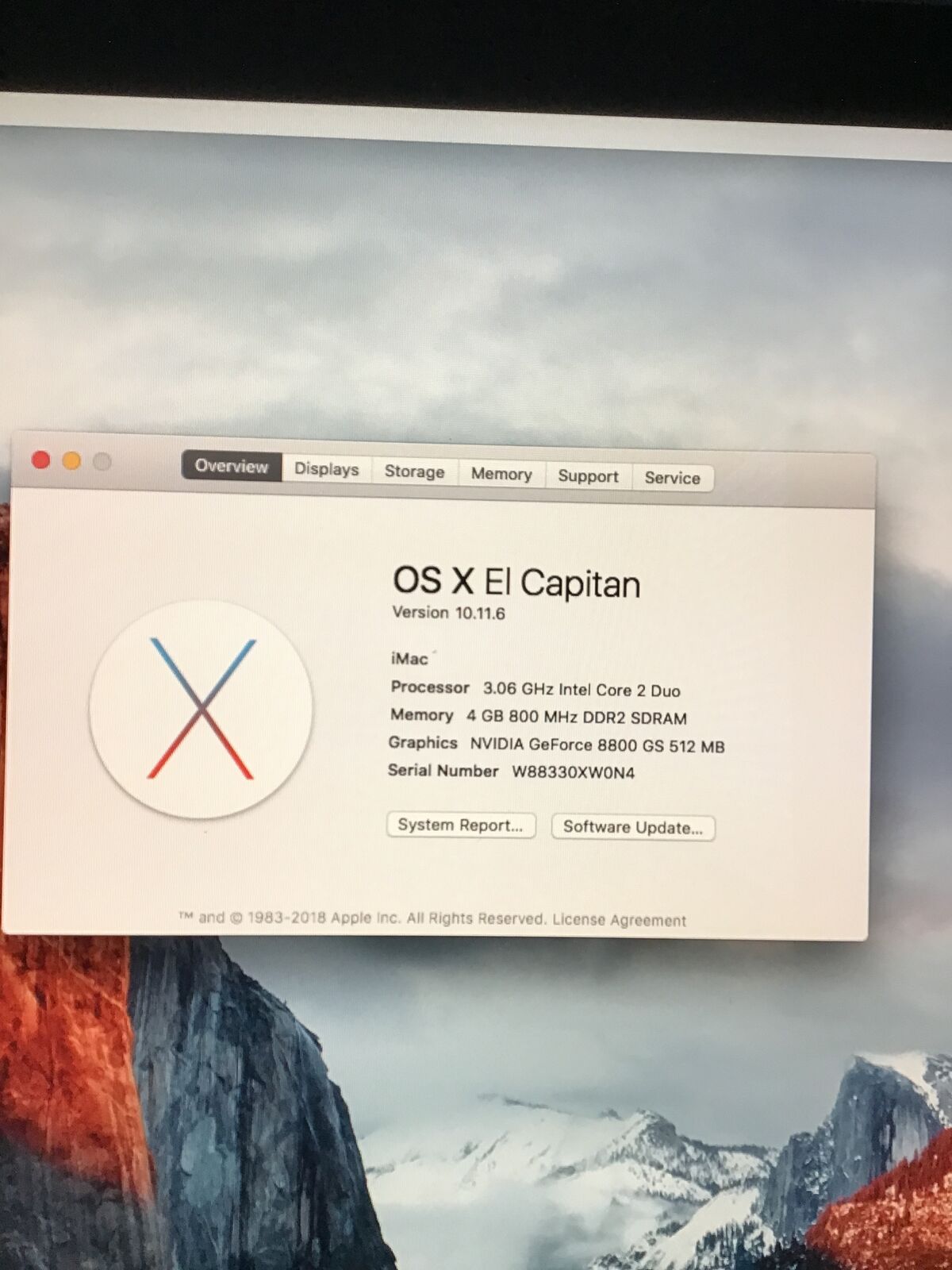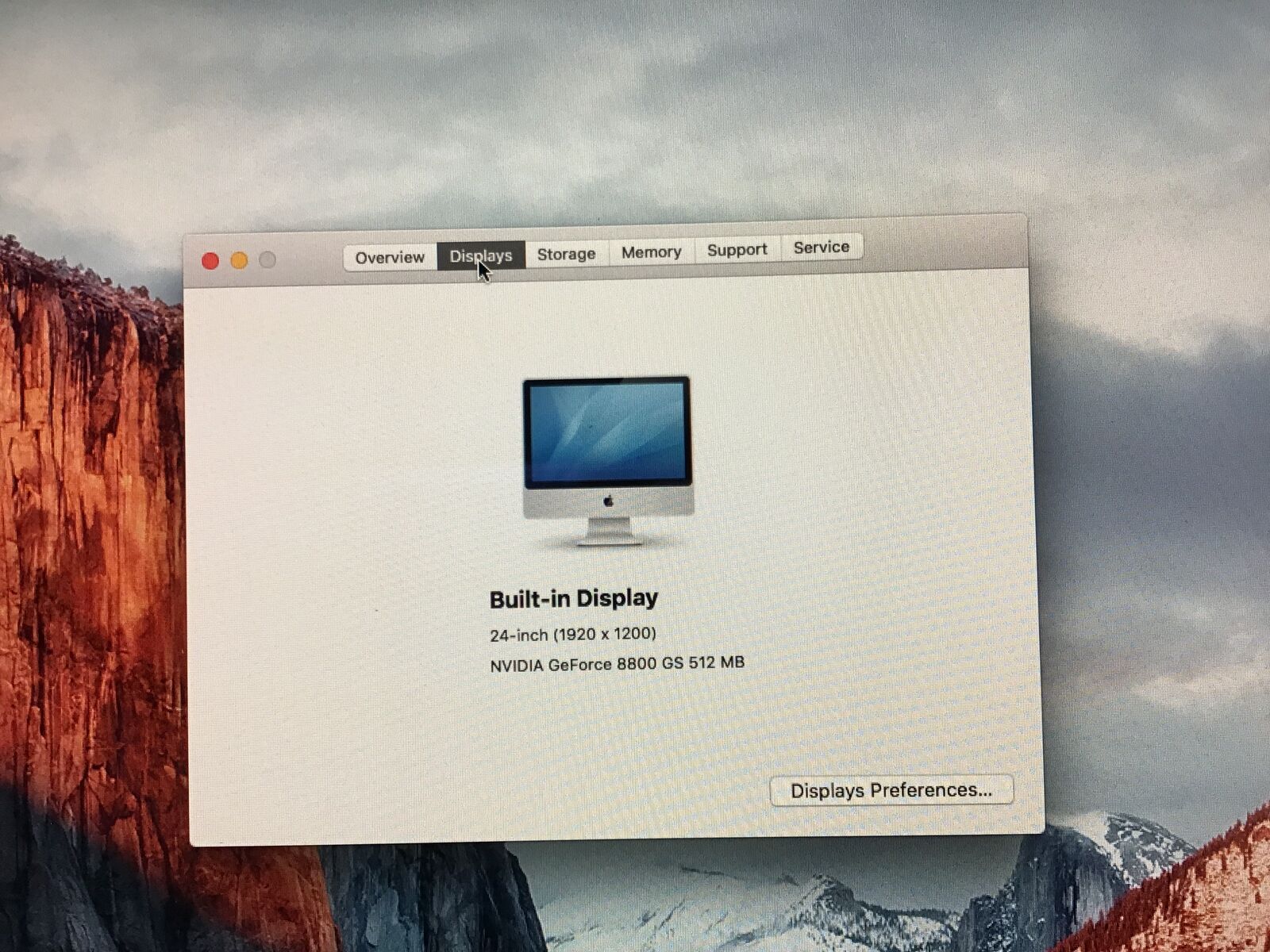 VenmoThis is a vintage 24-inch Apple iMac (Late 2007 / Mid 2007 Aluminum model, iMac8,1) in working condition, running macOS X El Capitan (10.11.6). It's a classic all-in-one desktop with a beautiful large screen—perfect for basic everyday use like web browsing, email, light office work, media playback, or as a secondary/family computer. Note: This is an older Intel Core 2 Duo machine (pre-2012), so it won't run modern macOS versions beyond El Capitan without patches, and performance is suited for lighter tasks. Key specs: