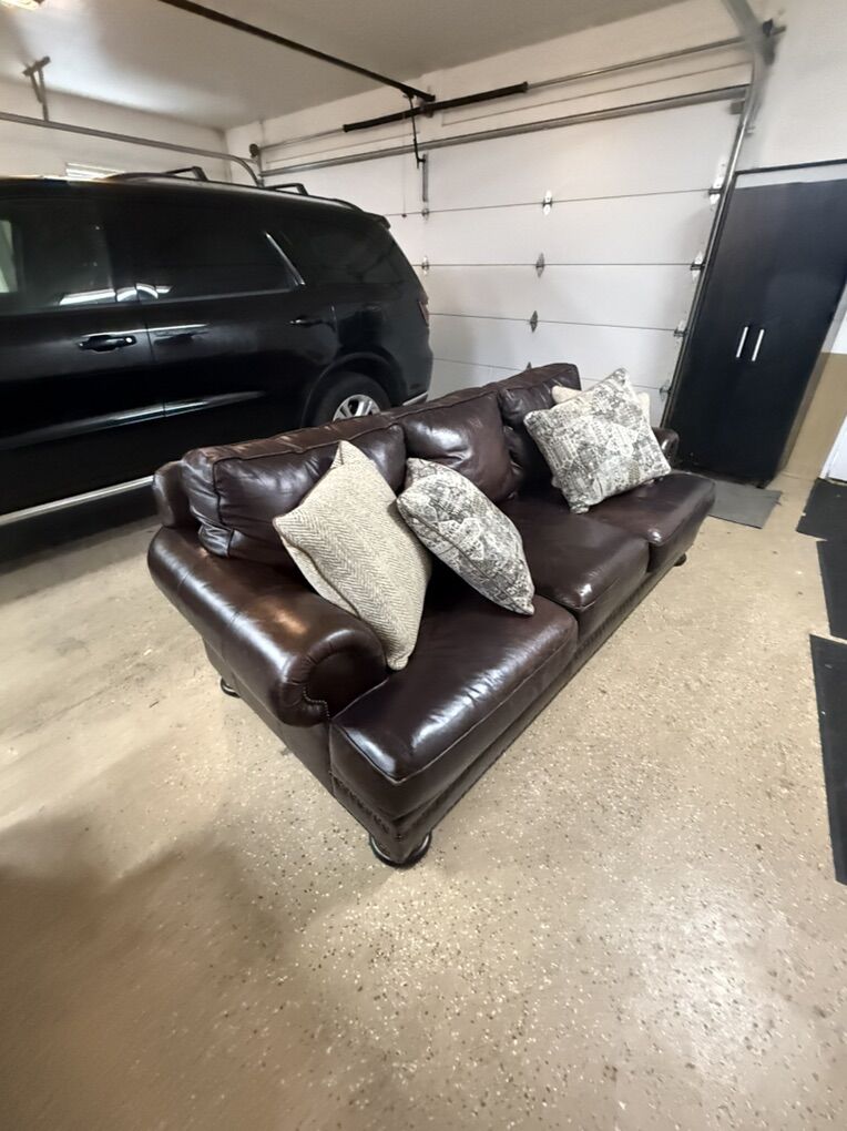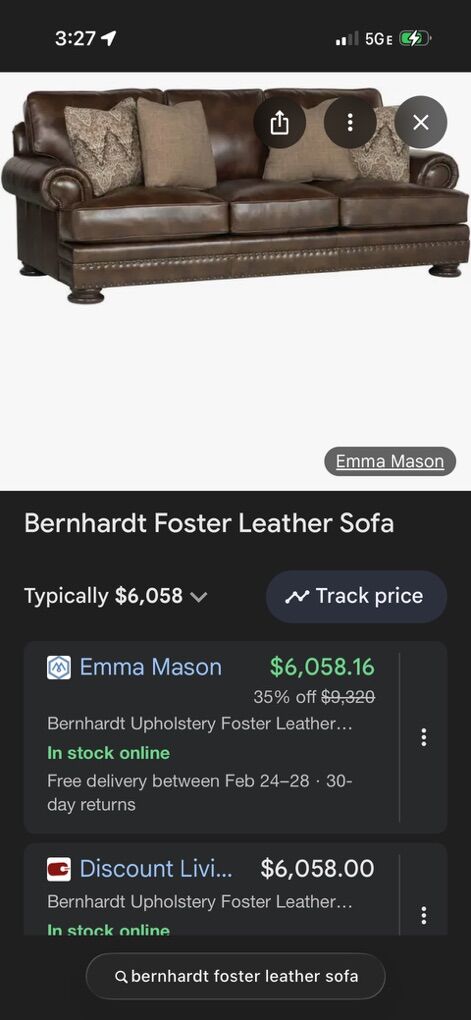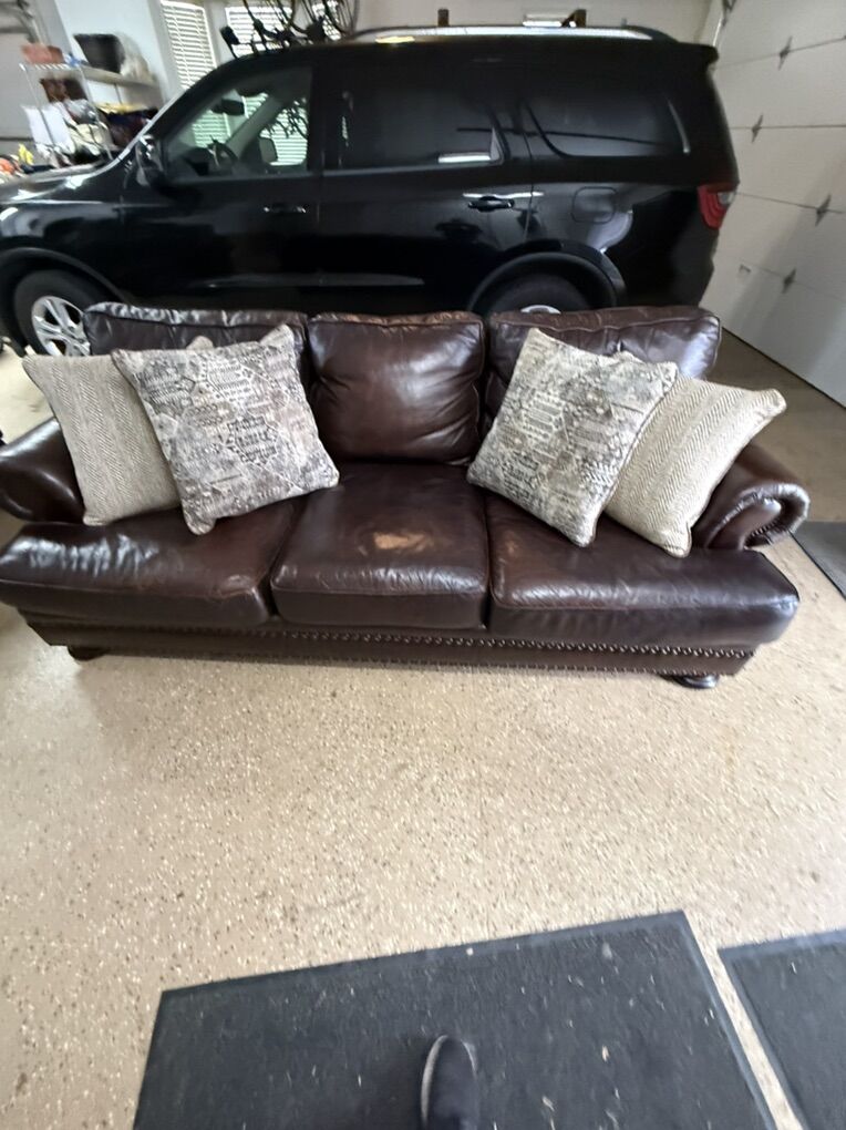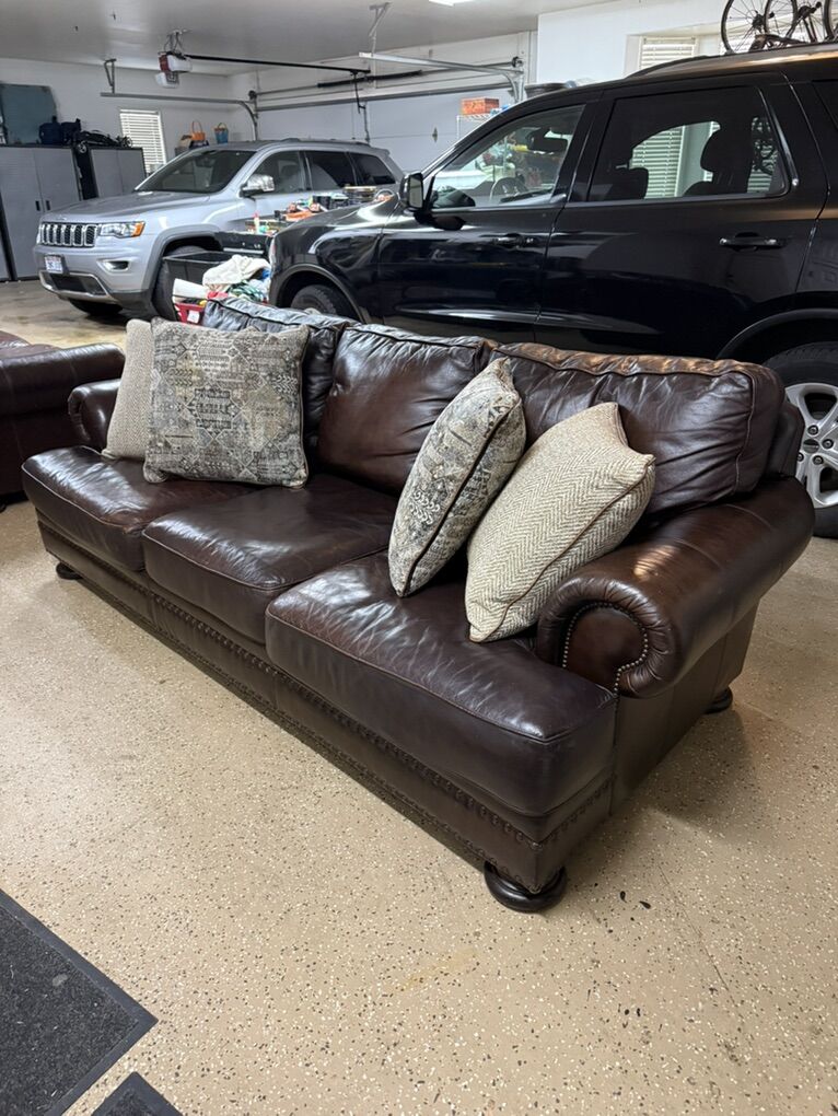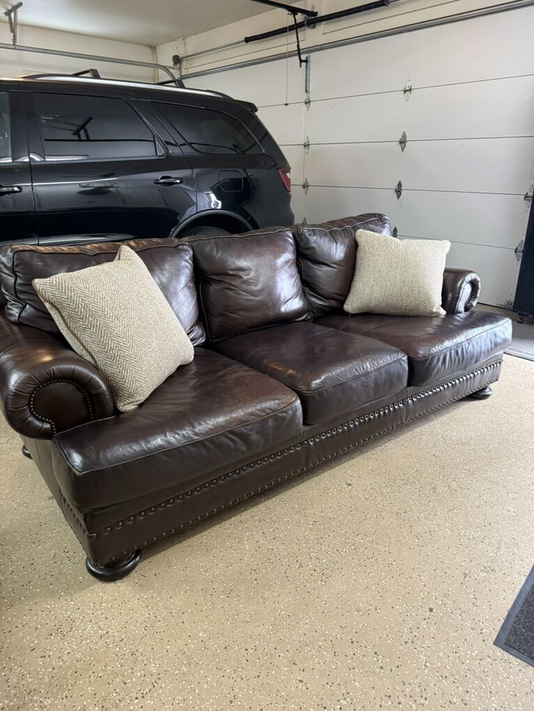 VenmoBernhardt Foster Leather Sofa. Very comfort -Comes with New pillows that are pictured. -Great condition -Overall Dimensions 39'' H x 98'' W x 44'' D -Retail price for new one is around $6,000 -Asking Price:$400 OBO