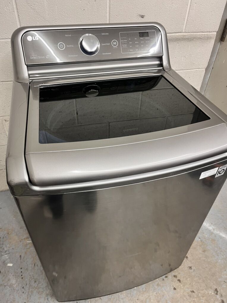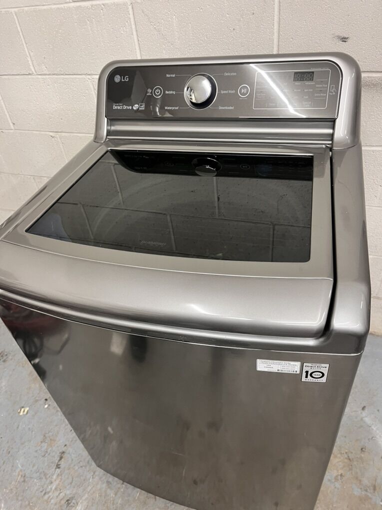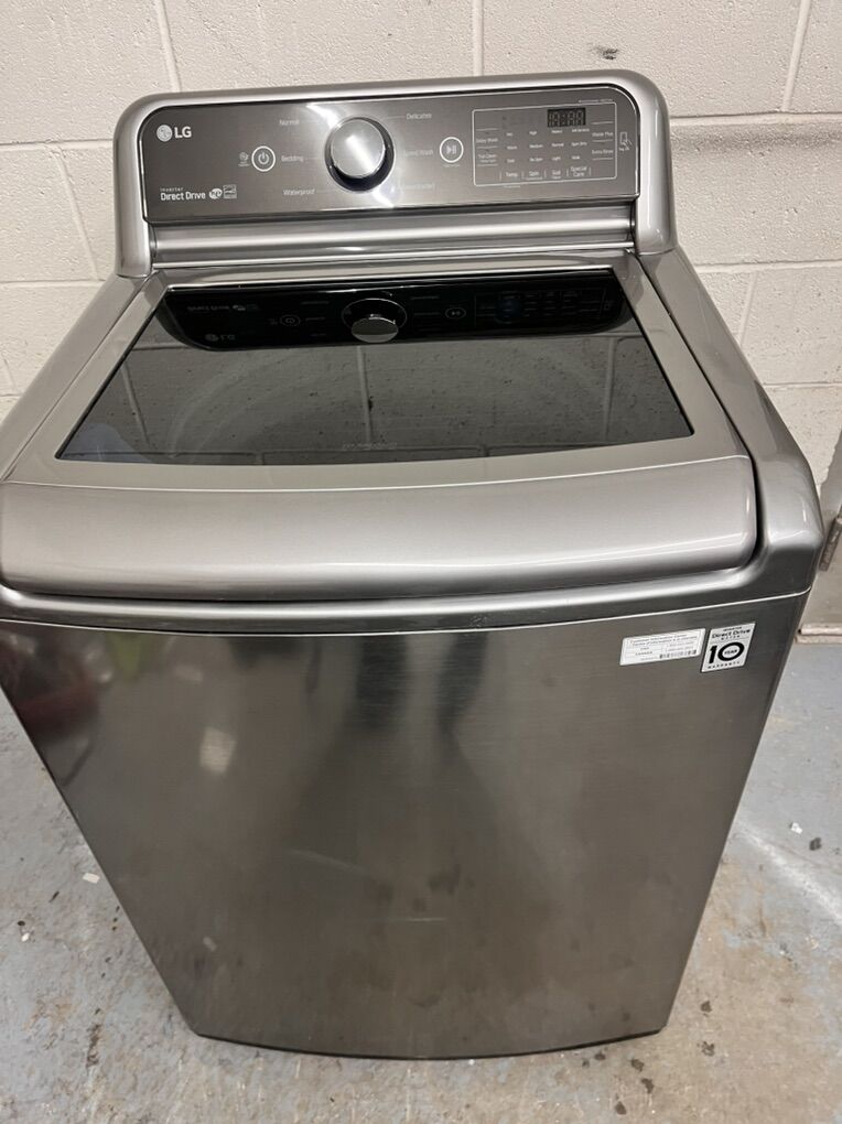 Very nice LG stainless super capacity washing machine in excellent condition and very clean, it has a huge 5.2 cu ft capacity drum with no agitator but an impeller for bigger loads, beautiful machine, only $240 I can deliver and install for a little extra. Call 8015403075