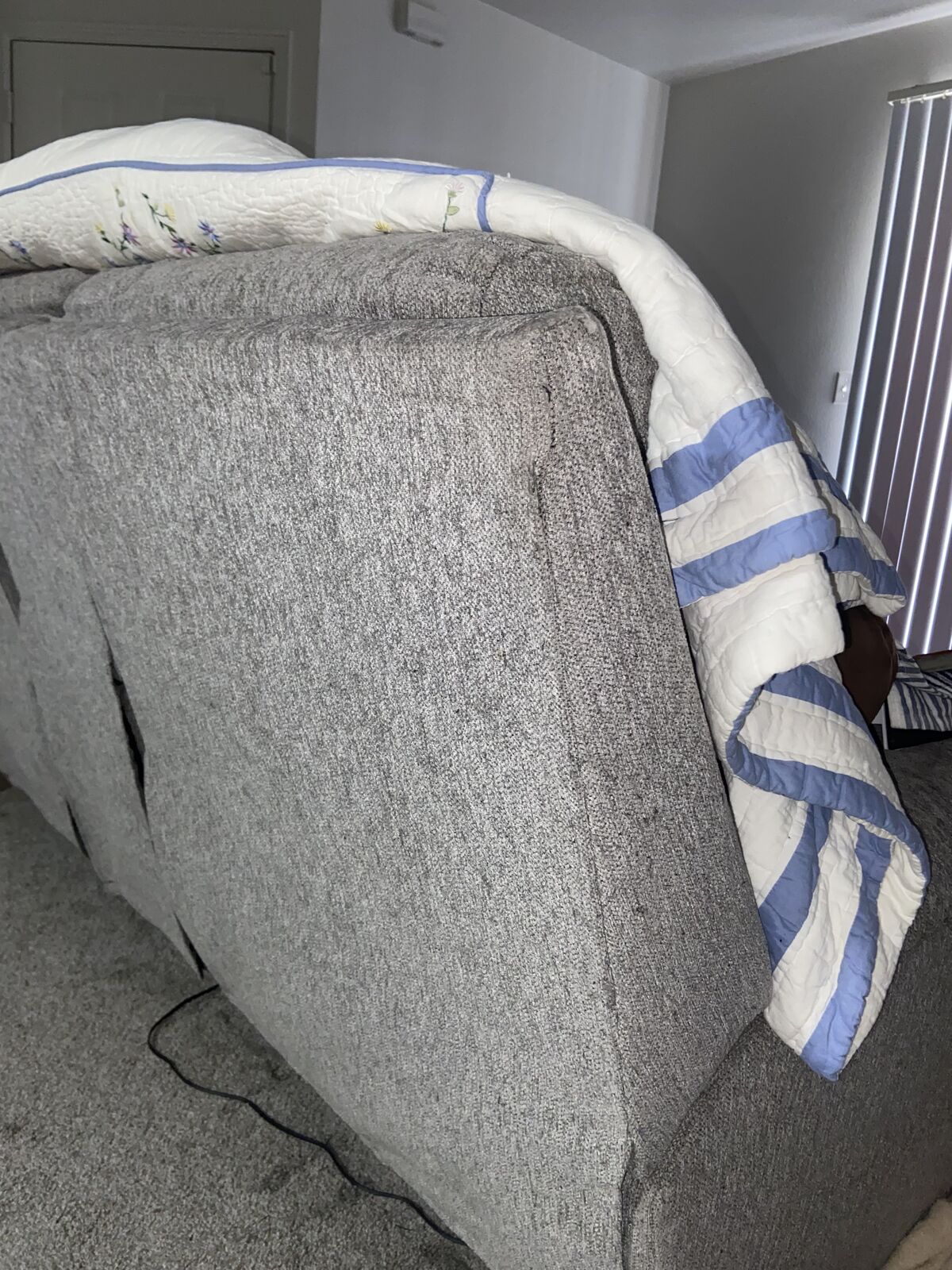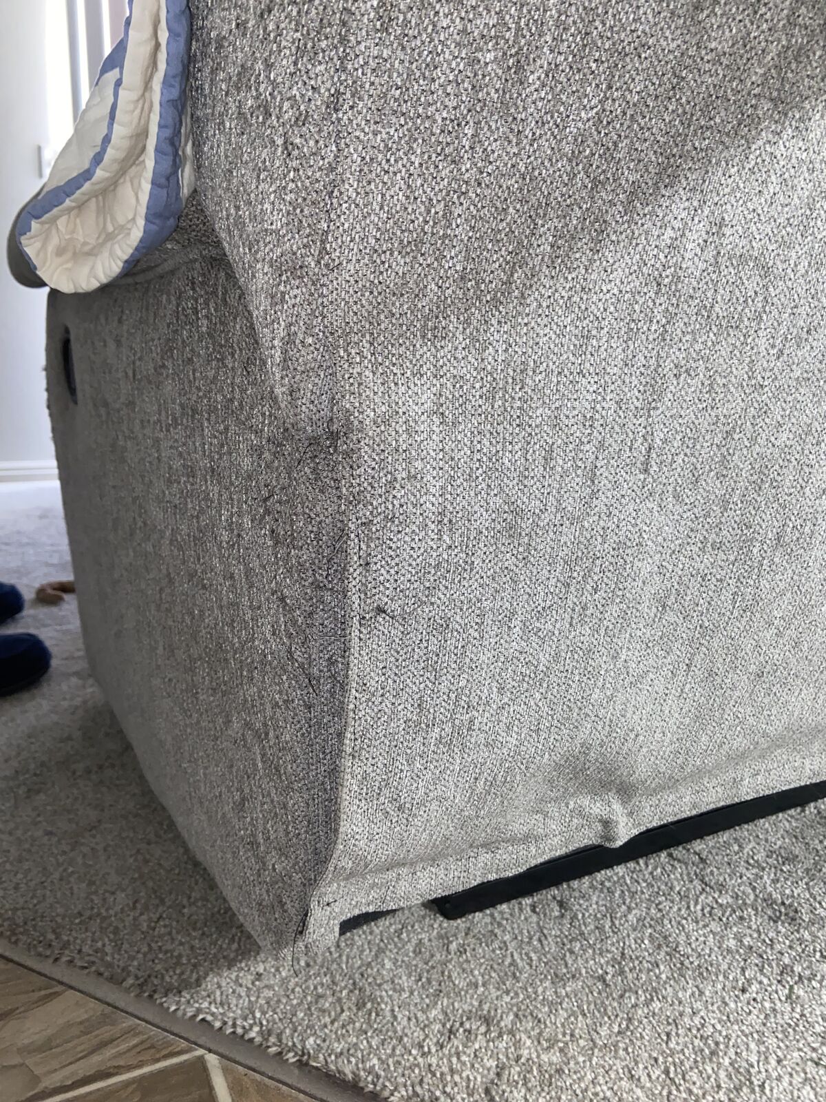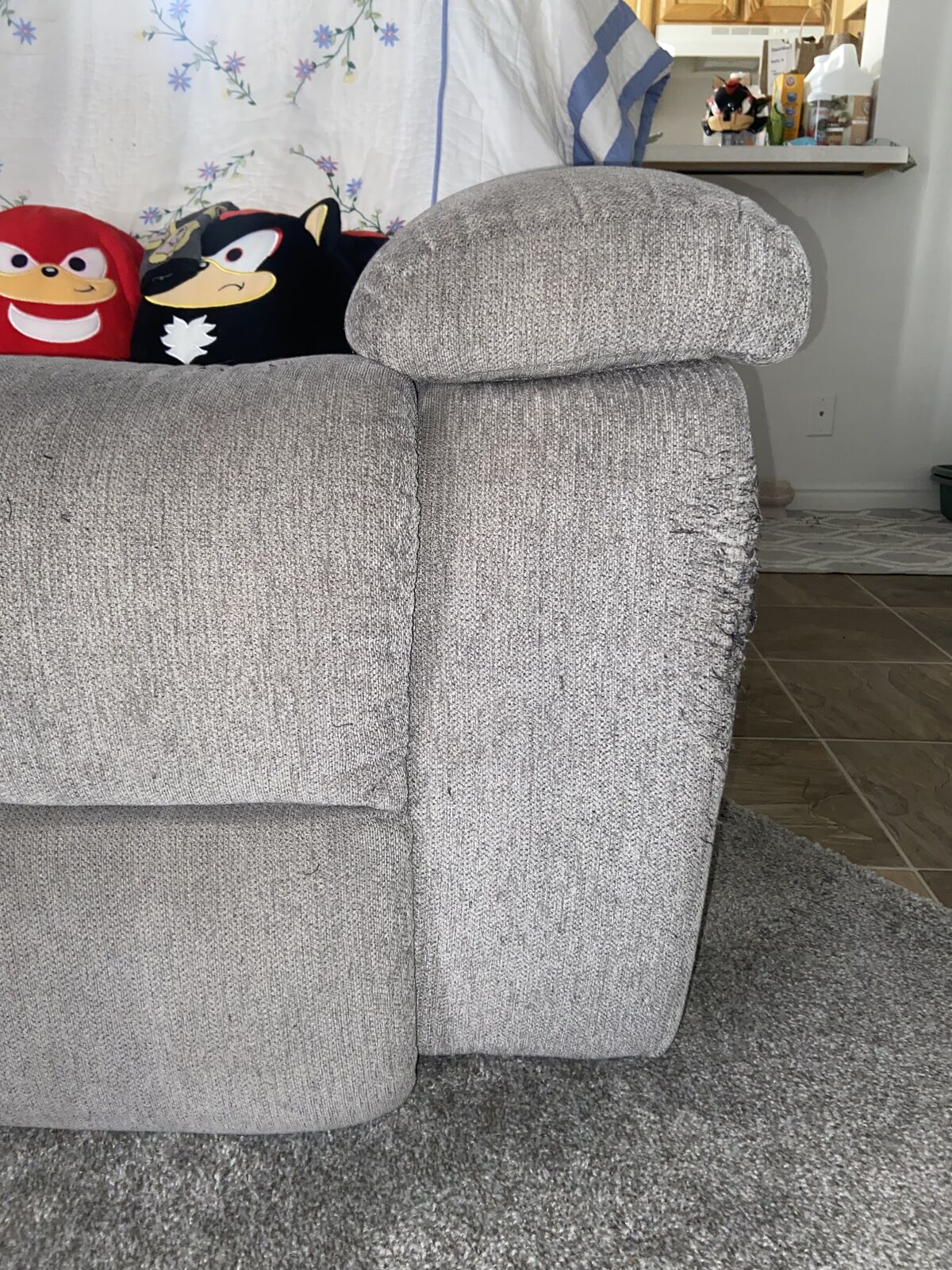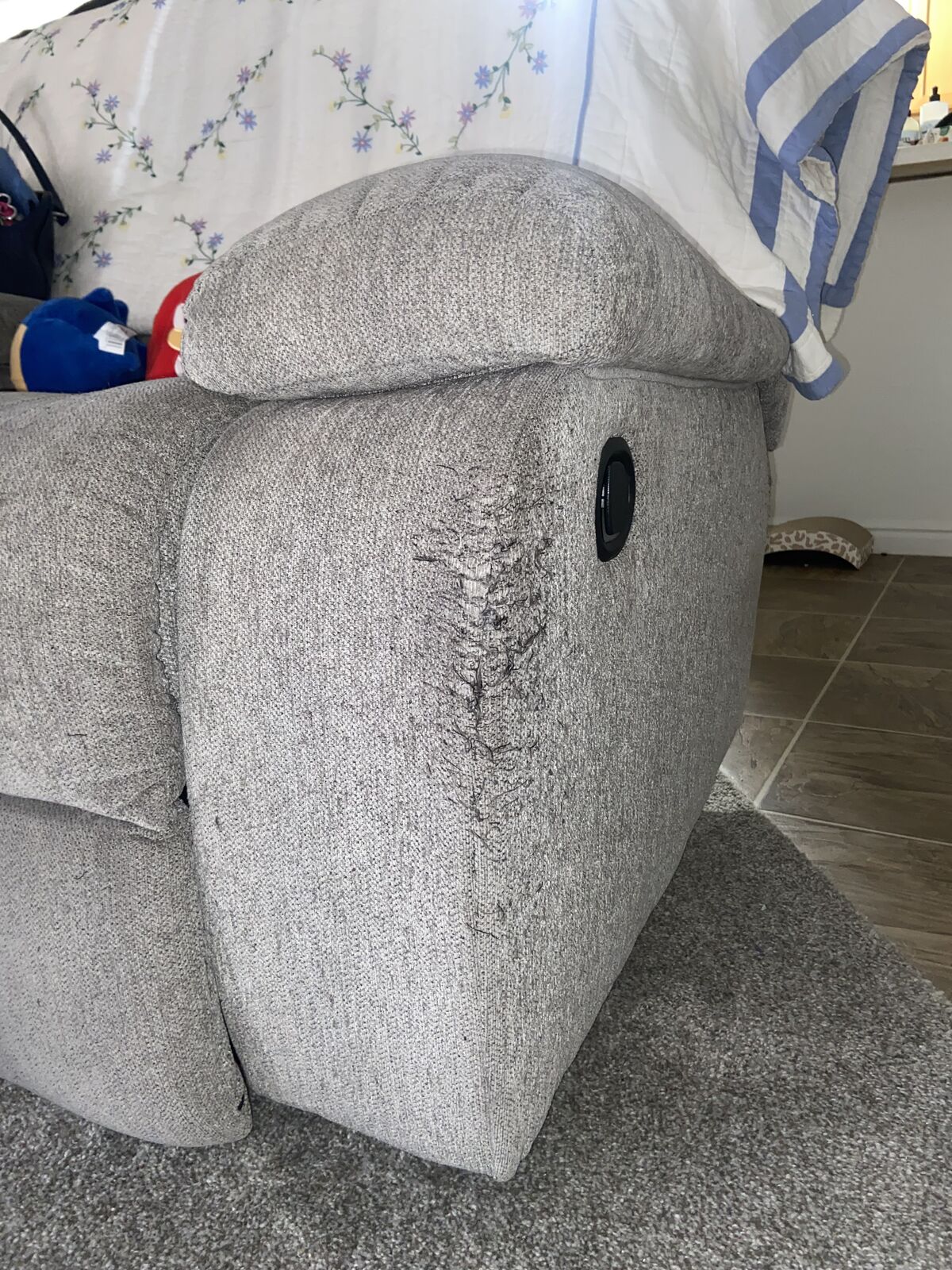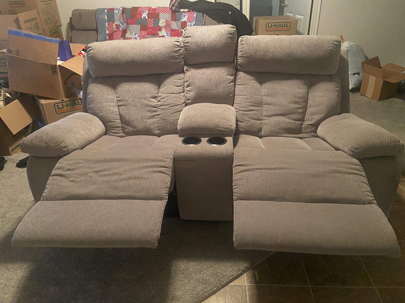 VenmoTwo-seater reclining couch, with charging port in middle console. Super comfortable couch, in good shape. reclines great and has a working charging port in the center console, along with two cupholders. Everything works perfectly fine with the couch. There is some fraying on the edges of the couch from a cat. You will need a truck with a bed to move it, it's a bit big. Would like 200, OBO