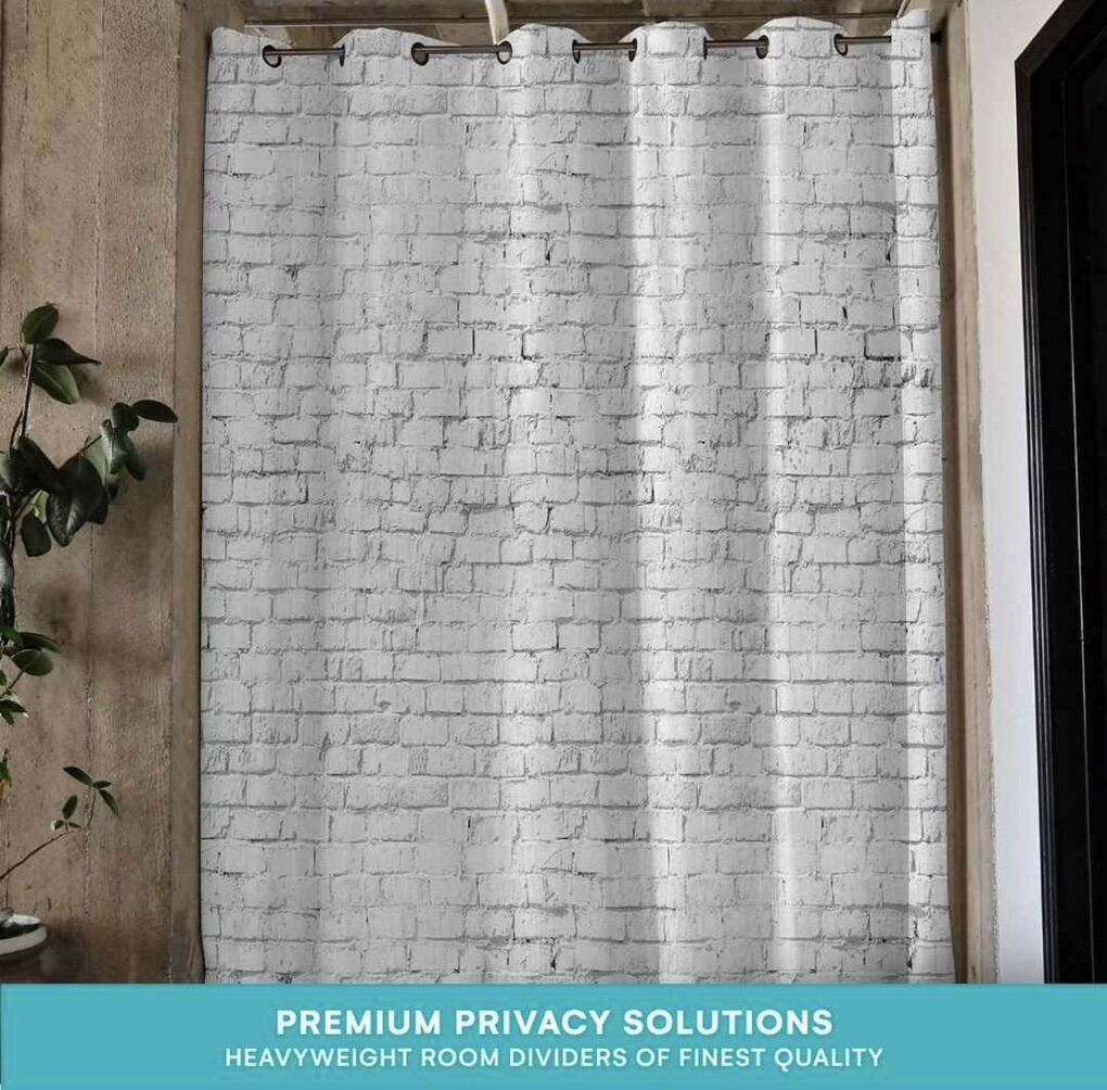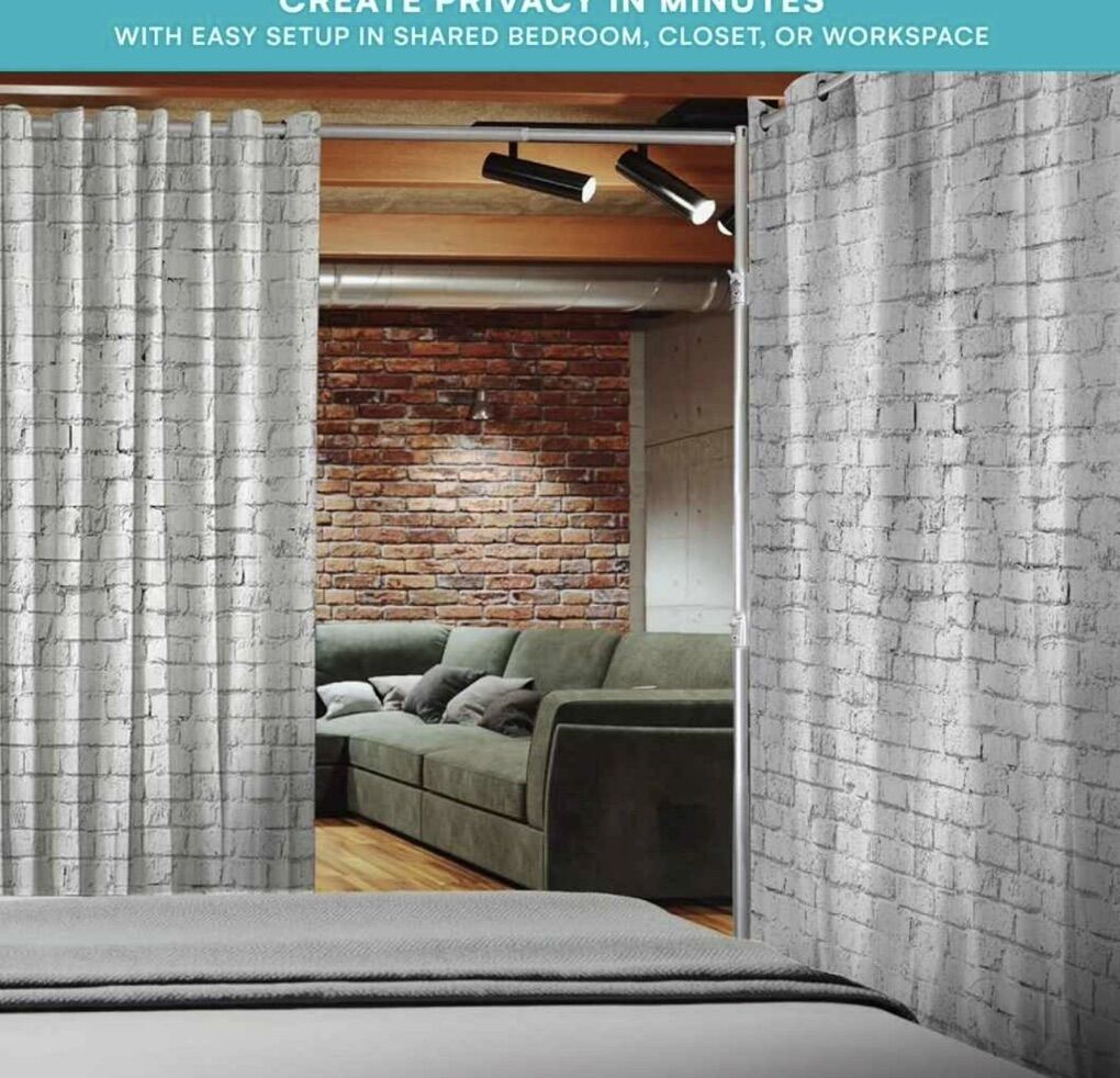 New in package 9 x 10 divider curtains, gray brick