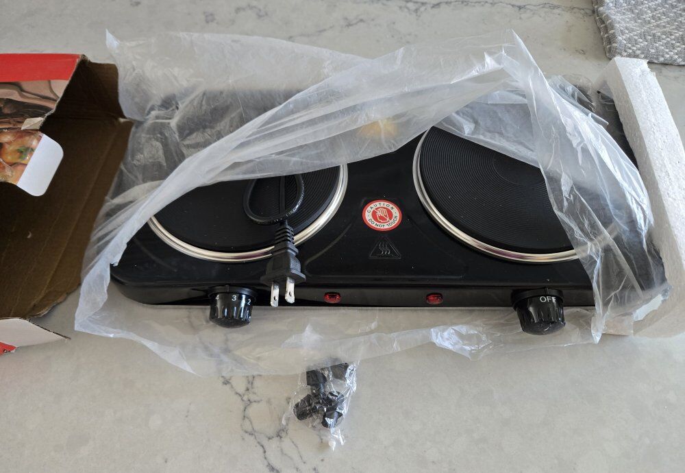 New in box. Box is roughed up but appliance is not damaged.