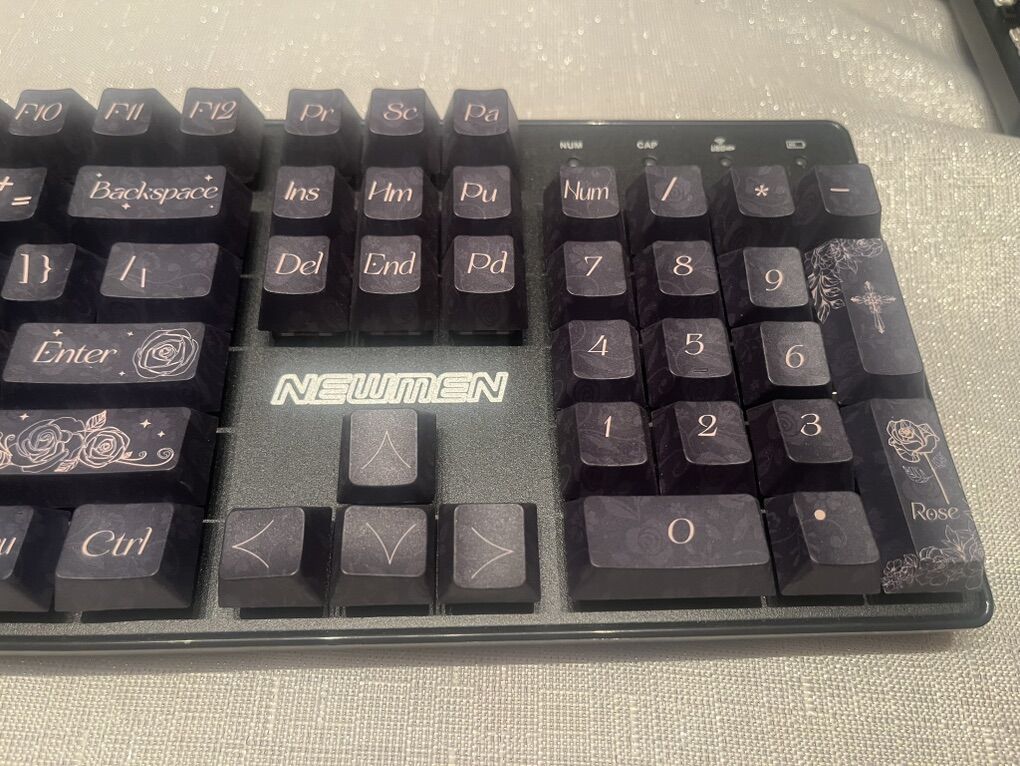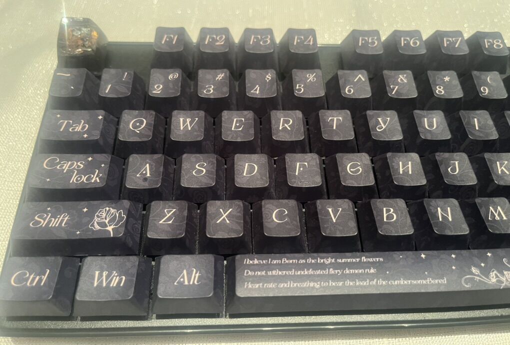 ApplePayThis keyboard is an elegant faux dark blue keyboard filled in with inspiring quotes and reminds that Jesus is with YOU. This keyboard has wired and 2.4 GHz connection to your device making it nice and easy. I will make the click to the keyboard triggers sound however you like it, for example, clicky, zero resistance thumpy, mute, soft, thocky, or easy press with feedback from the trigger that lets you know that you have pushed the button. I also feel a big magical theme to this custom made keyboard. $154 OBO this keyboard is laced with love