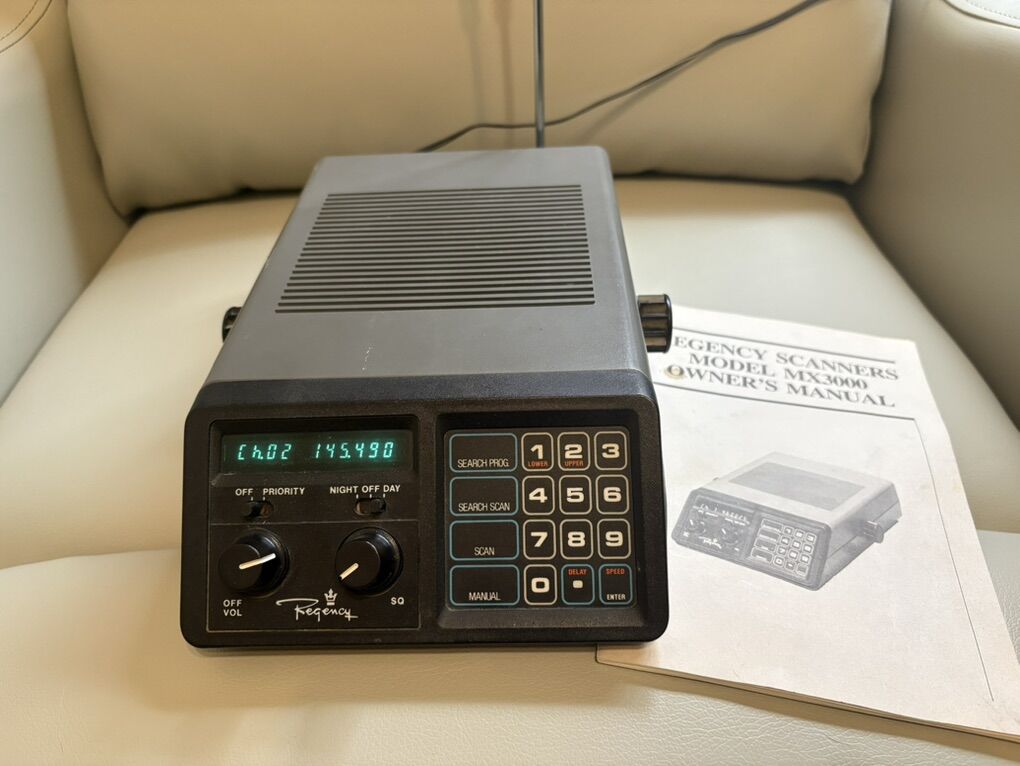 Regency MX3000 works great. Includes scanner, antenna, power cord and manual. Can make arrangements to bring to Sandy, Ut.