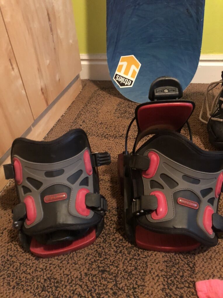 Snowboard, boots and bindings. I do not have the discs to mount the bindings to the board. The boots are a size 10. Perfect for a beginner.