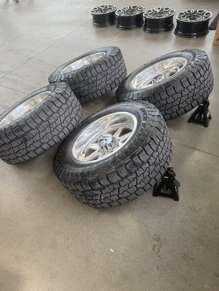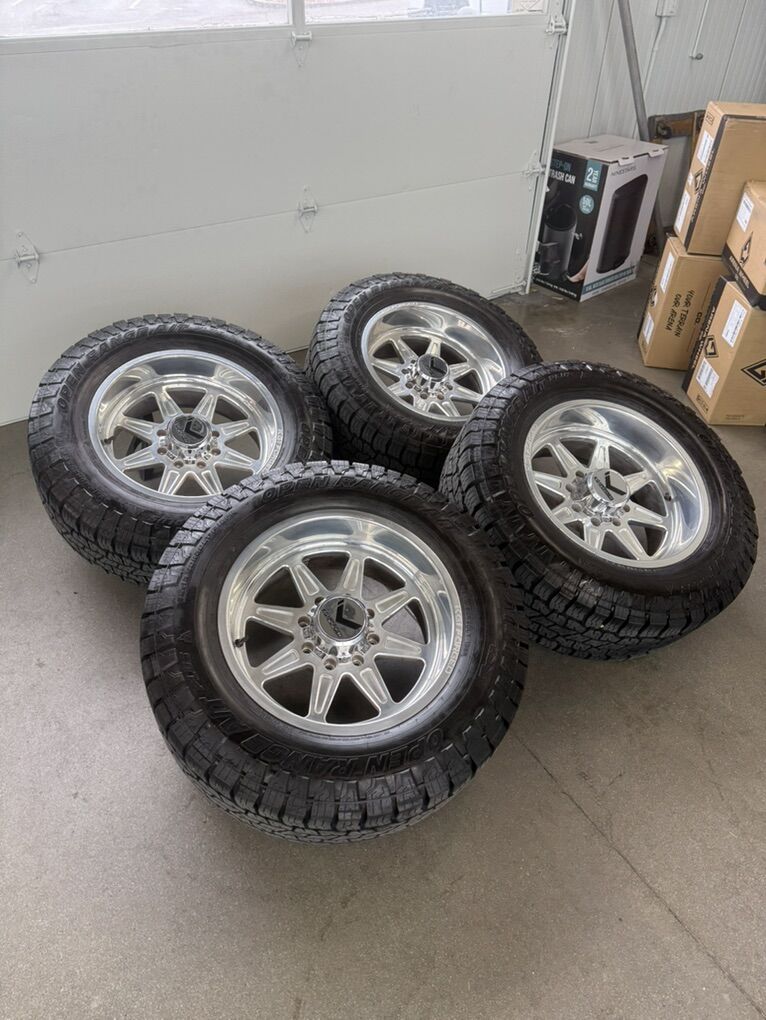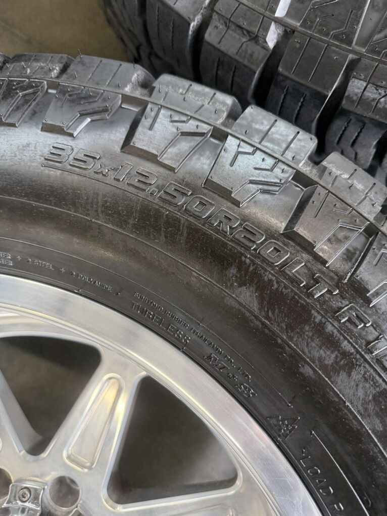 ApplePayLIKE NEW LESS THEN 5,000 MILES 20x10 kg1 “vamp” polished -24 offset 35x12.50r20 open range all terrain tires