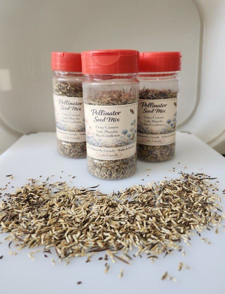 VenmoHand-mixed pollinator seed blend in an easy shake & scatter container. Perfect for Utah yards, bare patches, fence lines and neglected areas.