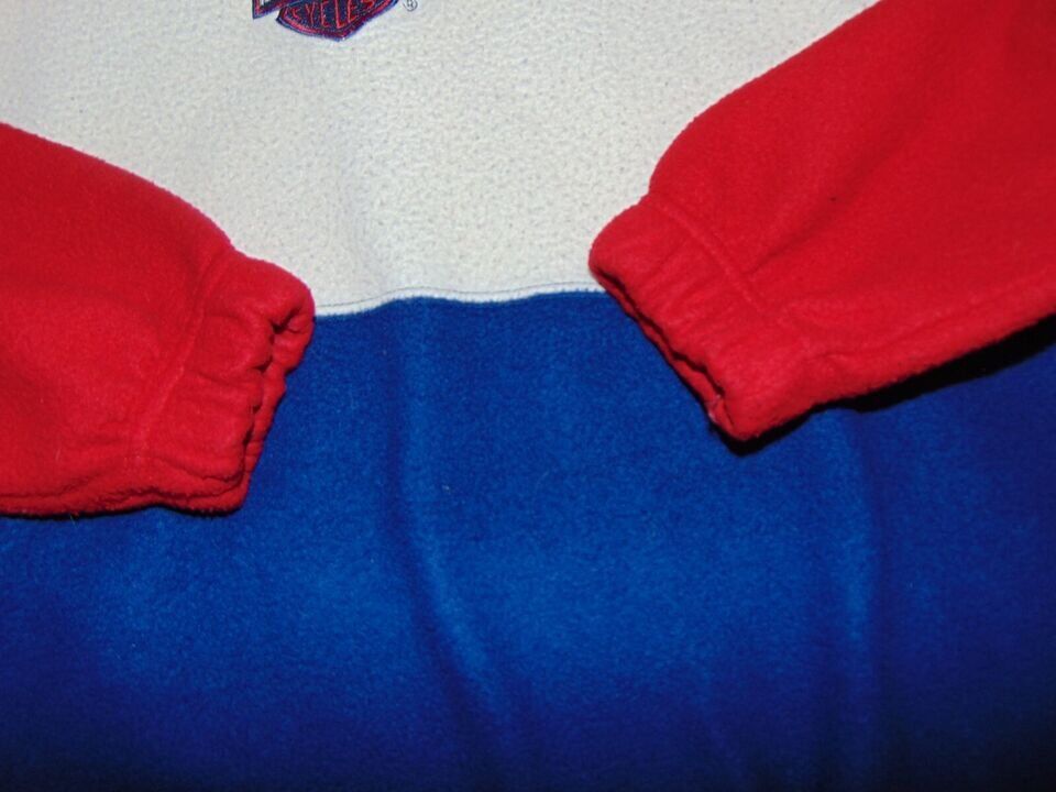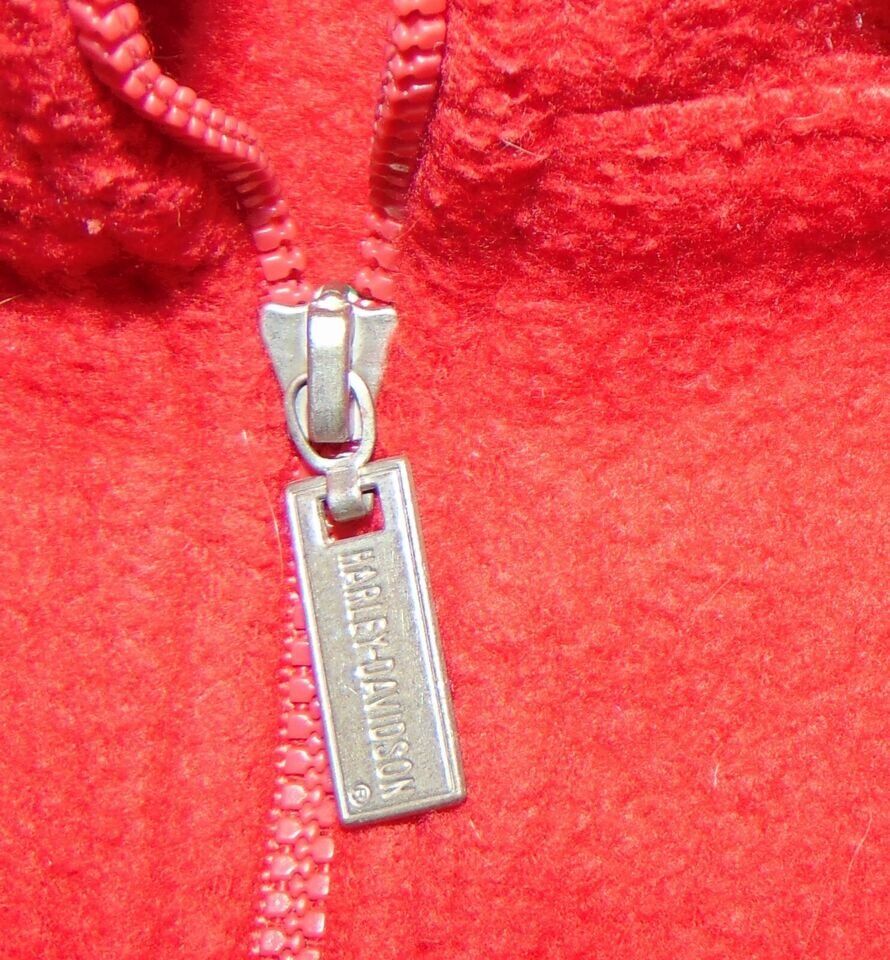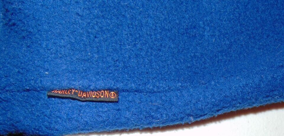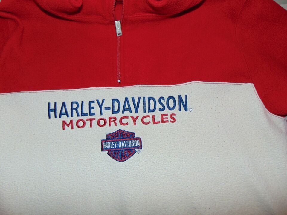 VenmoVintage Fleece Harley Davidson Pullover Jacket Red White & Blue The tags are so worn, there is nothing showing on them anymore. So IDK the size. Pit to pit is 21" Top of shoulder to hem is 28.5"