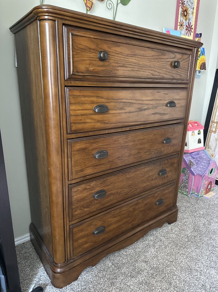 VenmoFive drawer dresser in excellent condition total measurement is 42” x 52” x 18”.