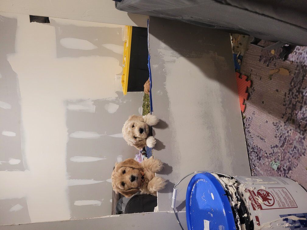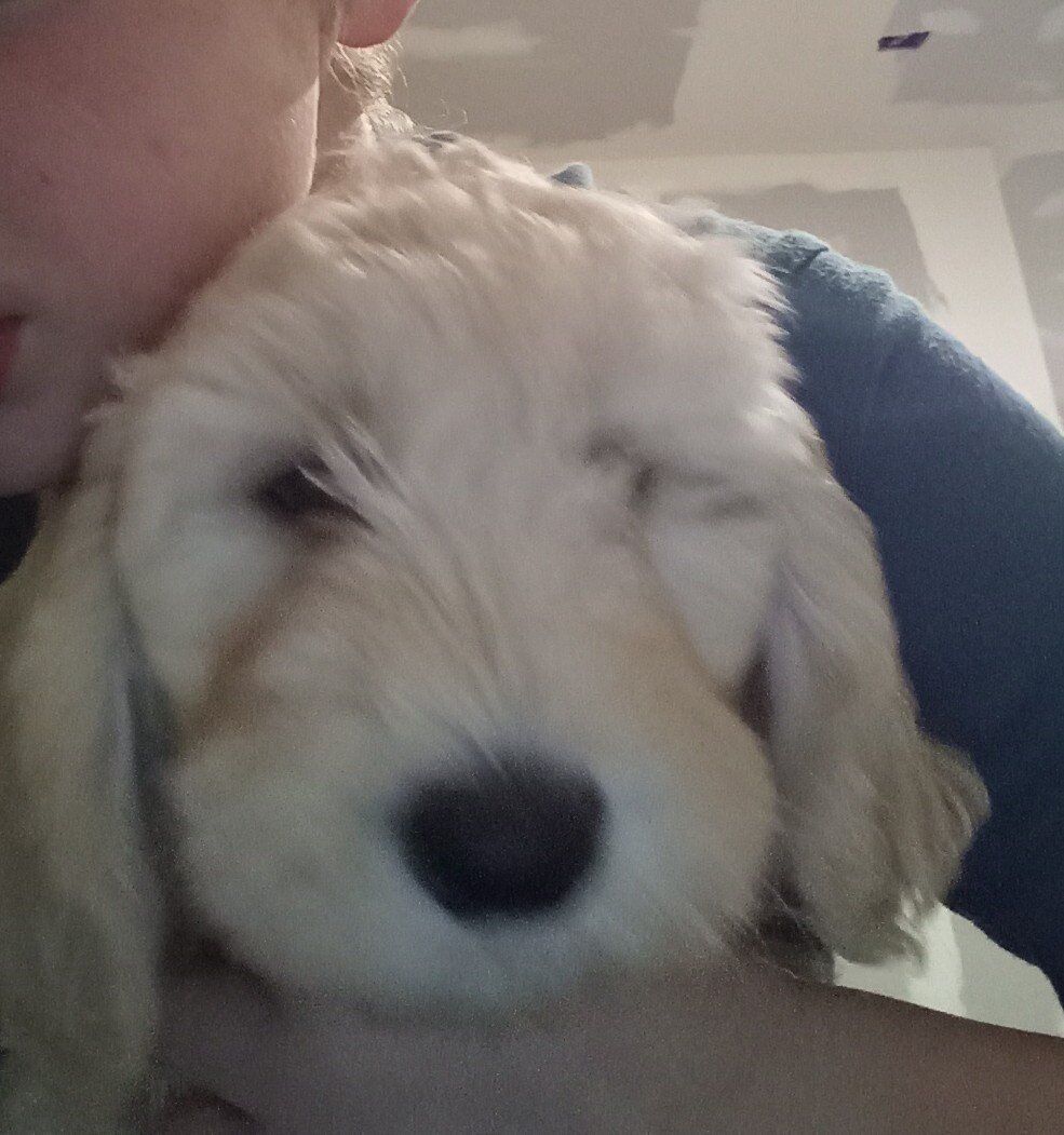 White female goldendoodle puppy just over 9 weeks old and ready to find her forever home. Loving and really intelligent. Mom is a 40 pound goldendoodlw and dad is a 25 pound goldendoodle. She is on the smaller side of the litter. Text 385-207-0271