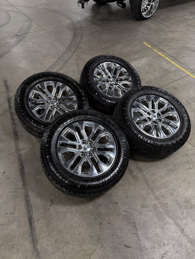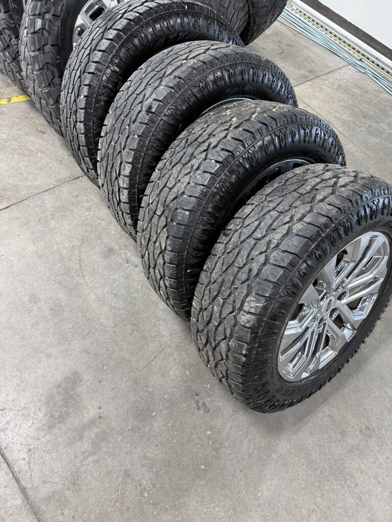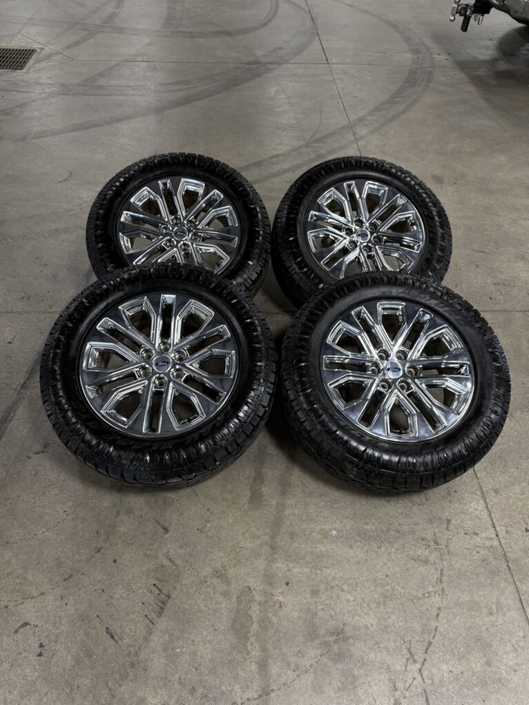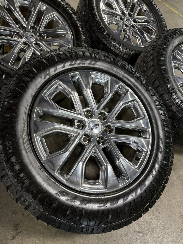 ApplePayLIKE NEW LOW MILES 20in f150 premium chrome wheels 275/60/20 atturo trail blade ats tires
