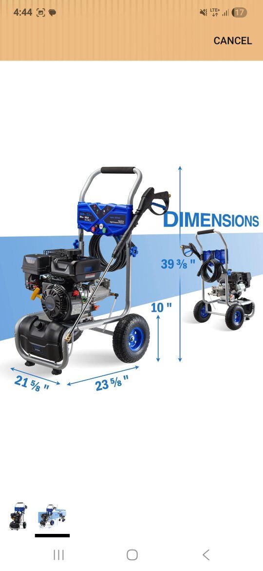 Venmo209CC Gas Powered, 3500PSI High Pressure—Our pressure washer gas is equipped with a strong 209CC 7HP engine delivering up to 3500 PSI of water pressure. This high-pressure performance effectively removes stubborn dirt and grime without the need for electricity, offering you flexible and powerful cleaning anywhere. 2.3 GPM Flow, 4 Adjustable Nozzles—With a steady water flow of 2.3 gallons per minute, this heavy-duty water pressure washer handles various cleaning tasks with ease. It comes with four quick-connect nozzles (0°, 25°, 40°, and soap) that allow you to switch from powerful spray to gentle wash, suitable for cars, patios, decks, and fences. 25ft Hose, Portable with Rubber Wheels—Equipped with a 25-foot pressure hose and 2 sturdy 10-inches rubber wheels, this pressure washers gas offers excellent reach and easy portability. The anti-slip rubber feet provide added stability during operation, ensuring safe and reliable performance on various surfaces.