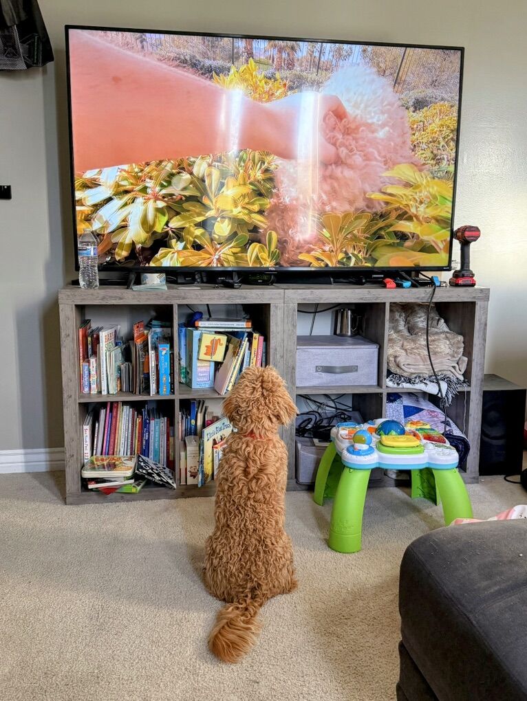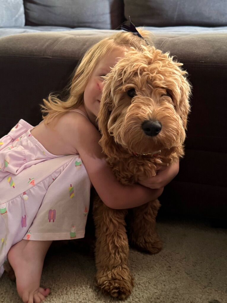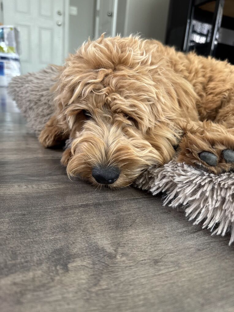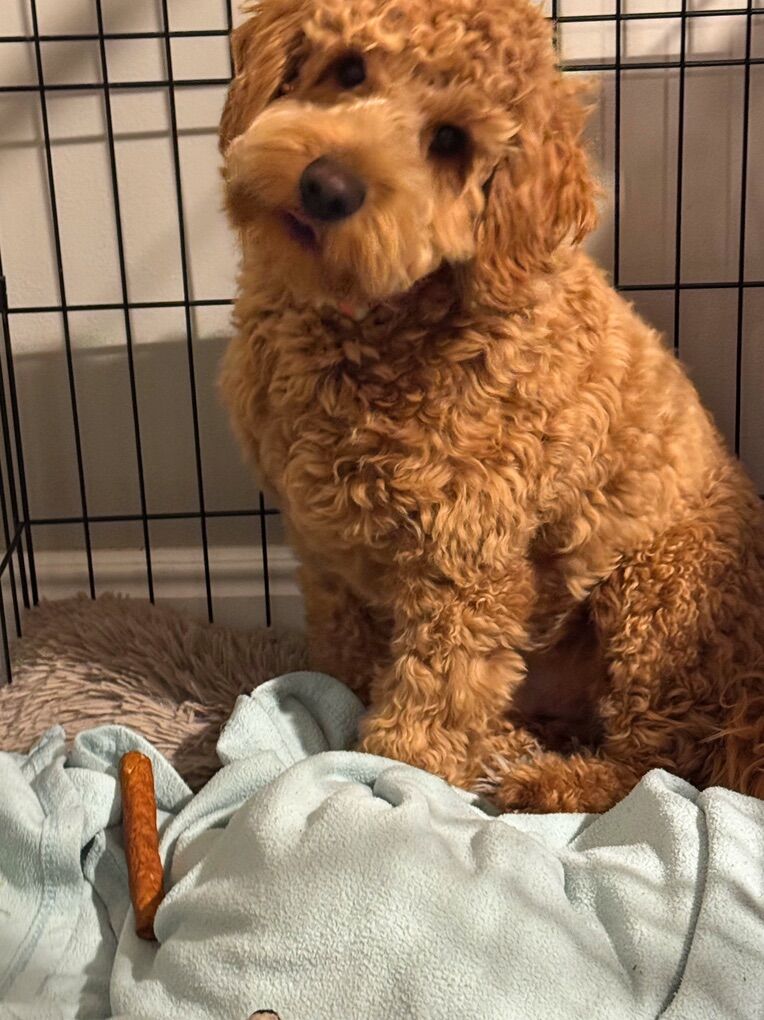 Duke is crate trained and sleeps comfortably in his crate at night if you prefer that. He can also stay in it during the day while you’re away. He absolutely loves being outside and playing.