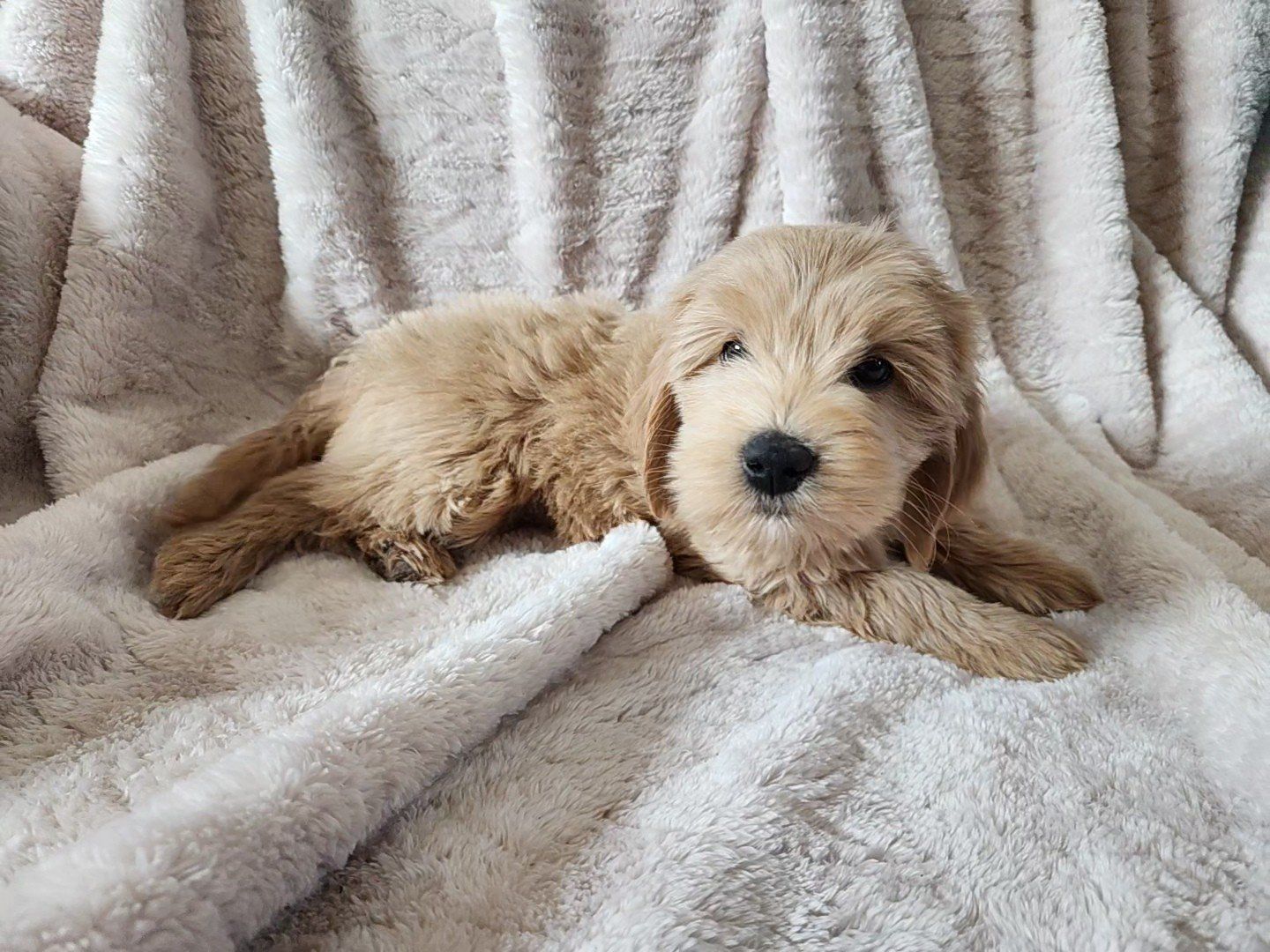 VenmoThese adorable teddy bear Goldendoodle puppies will be about 14-18lbs full grown. They have been raised in our home around people of all ages, other dogs, and cats. They are well socialized and will make the very best companions, very friendly, and affectionate. They are from health tested lines that are 100% clear of genetic diseases. They will live long healthy lives.