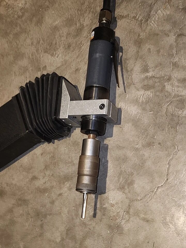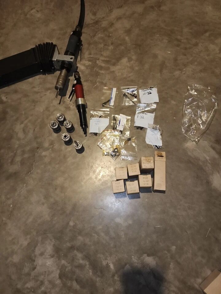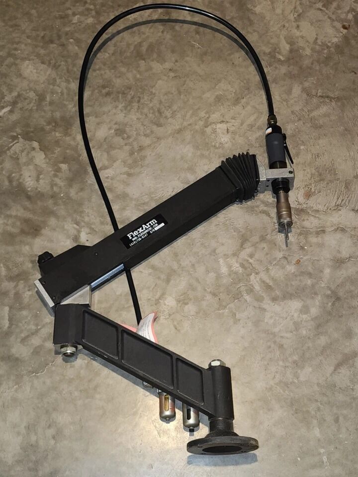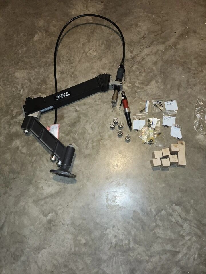 VenmoFor sale: FlexArm A-32 pneumatic drilling arm with complete kit for Helicoil installation. This system has been used lightly in a production workshop and is in good working condition, showing only minor wear.