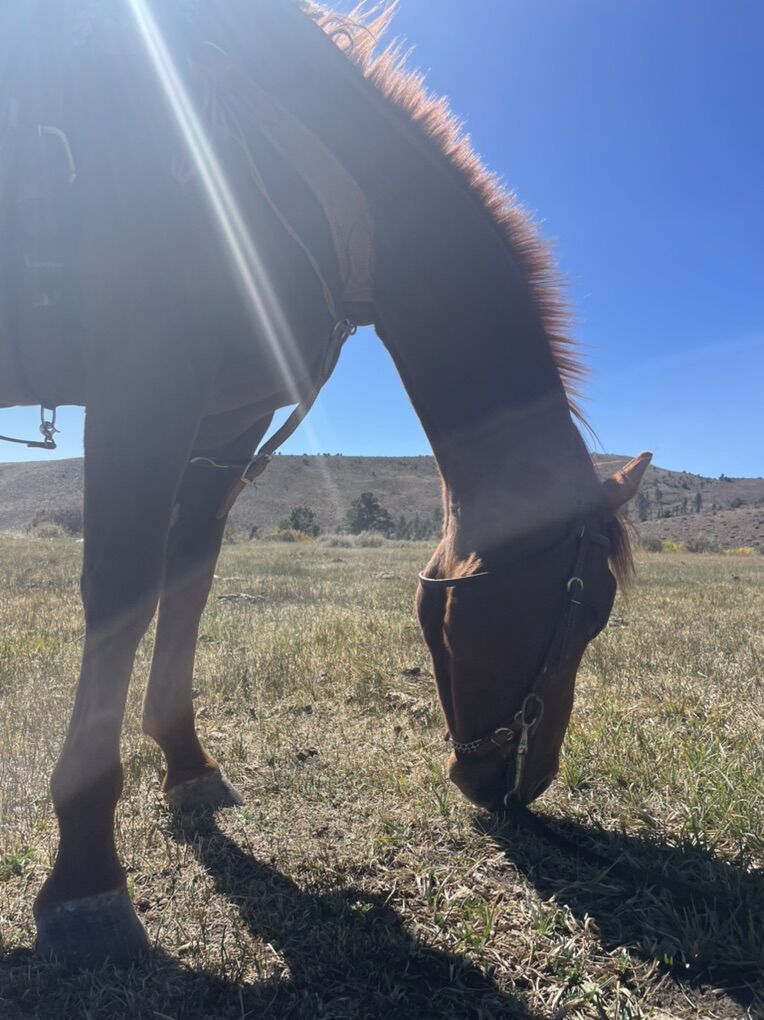 Andy is a gentle gelding on the smaller side. He is a great mountain horse that likes to move out. You can move cows on him, pack on him or lead a pack string. He used to being around creeks and water. Gentle enough to lead kids around on him, we led our daughter on him for barrels. Picks up all four feet and is easy to saddle.