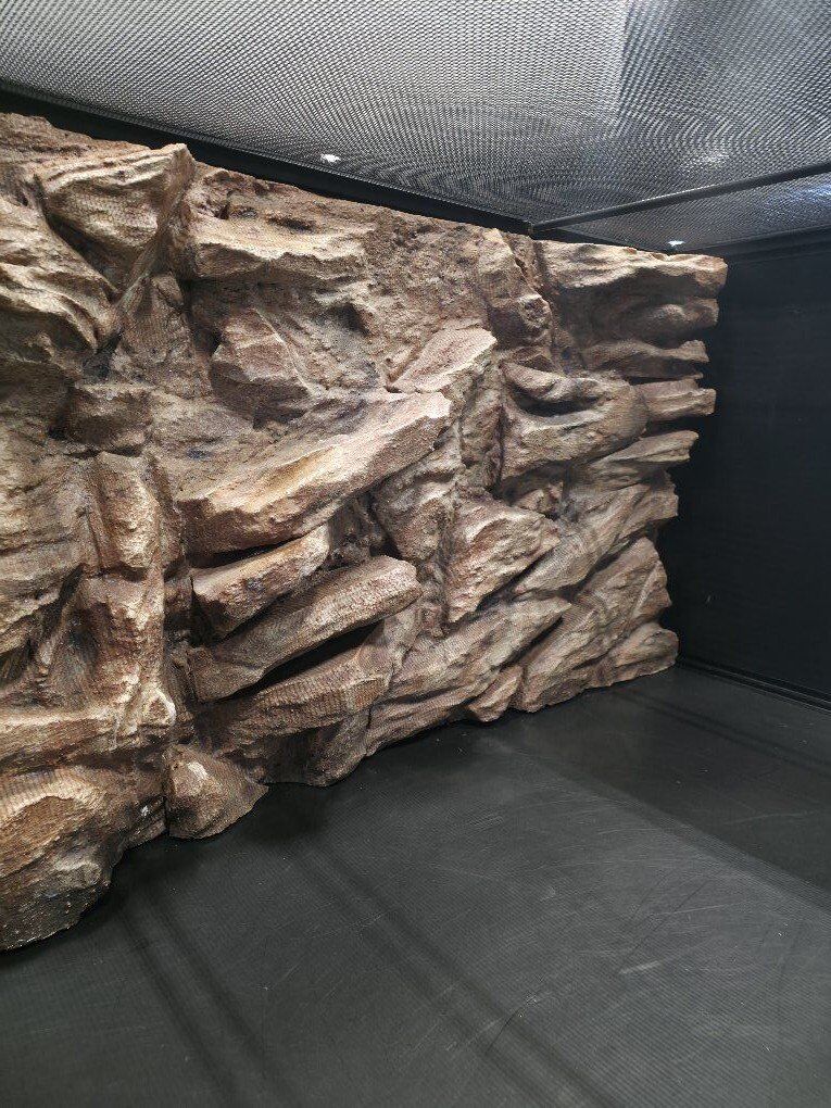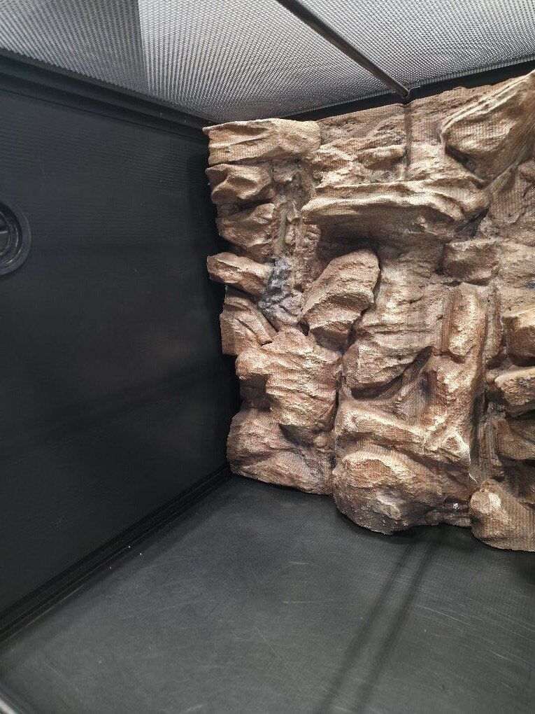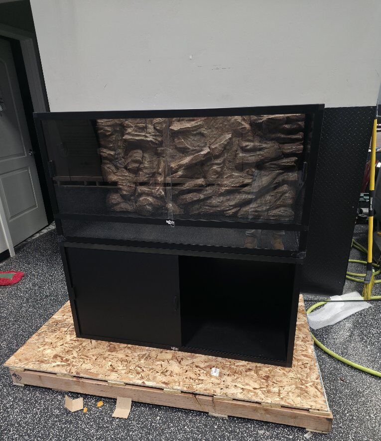 GooglePay120 gallon tank. Has a custom rock wall for climbing and basking. Vent ports on the side and a stand for storage. My iguana out grew it, so we went bigger!