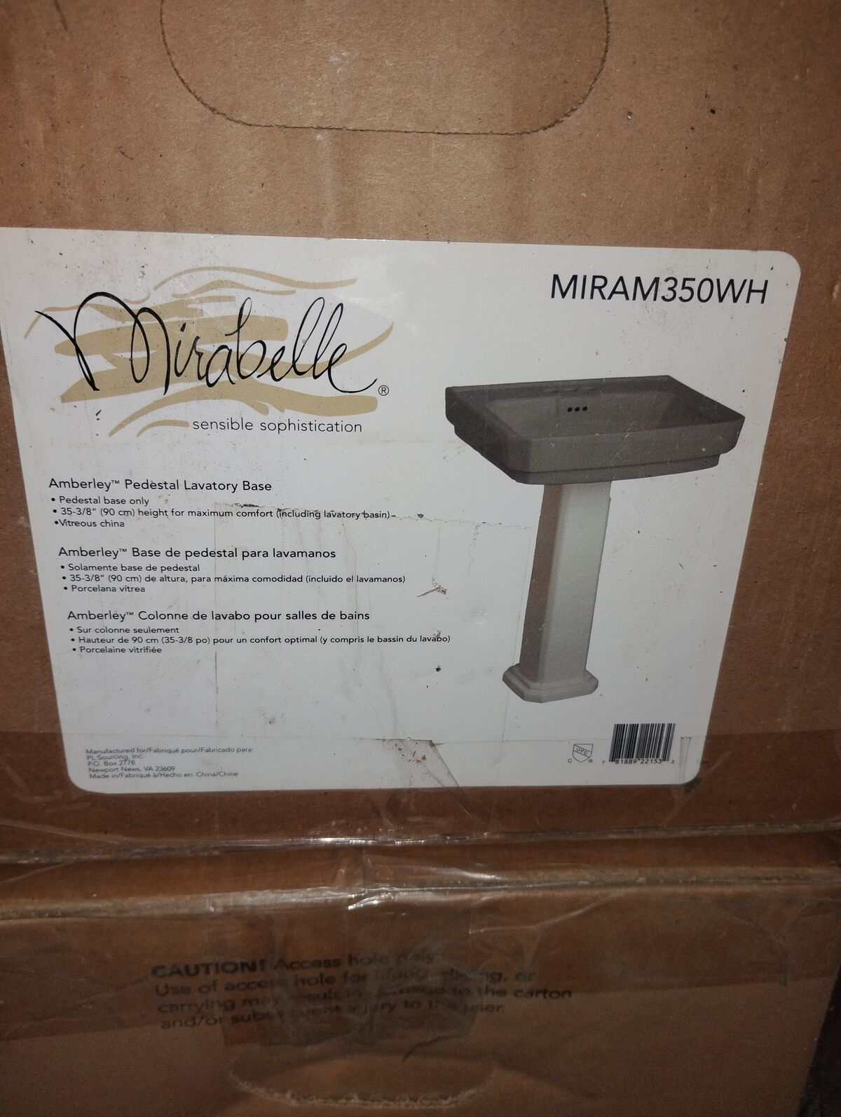 VenmoSpacious White Mirabelle Pedestal Sink, vitreous china, new in box, 23 7/8 19 1/4 inches, 2 available
