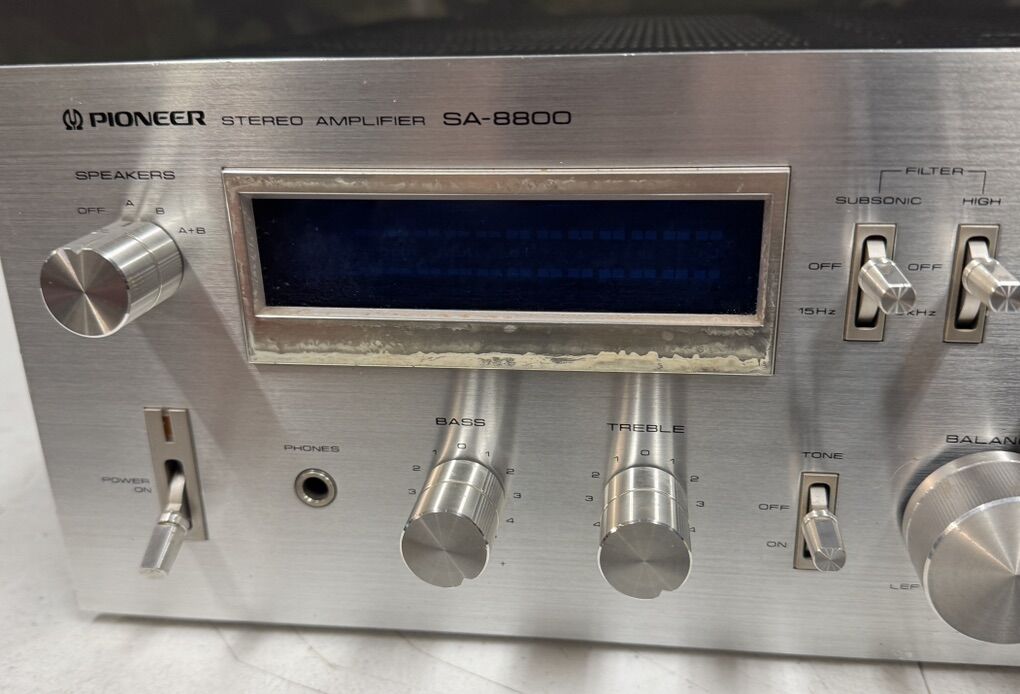 Vintage integrated stereo amplifier Pioneer’s respected SA-8000 known for blending strong power, detailed sound, and a solid build
