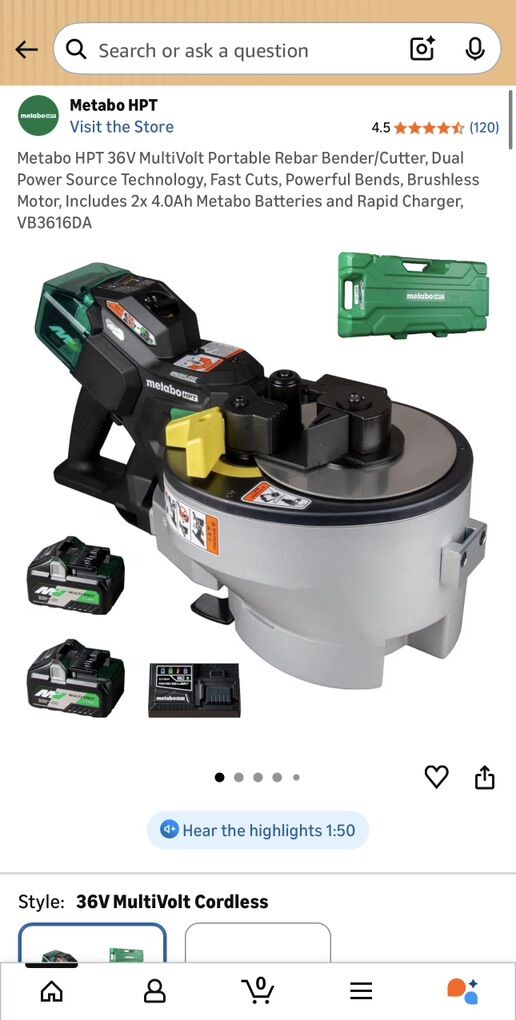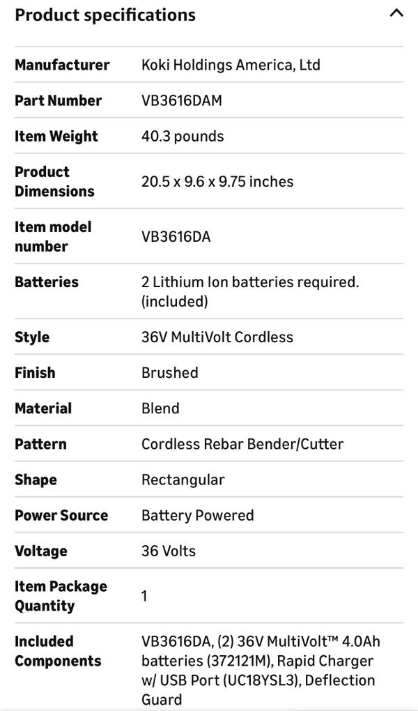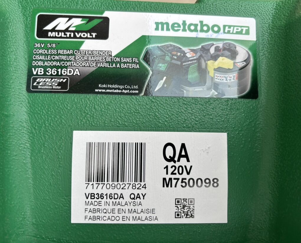 Description- HPT 5/8” 36V cordless rebar cutter/bender. Multi volt brushless with 24.0 AH batteries. See photos for more product information and specifications.