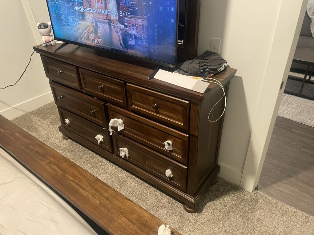 ApplePayVery lightly used. Mirror piece can detach from Dresser. From Ashley furniture