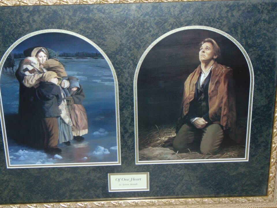 LDS Mormon Liz Swindle "Of One Heart" artwork Framed Emma On The Ice & Joseph in Liberty Jail 31" x 23" (in frame)