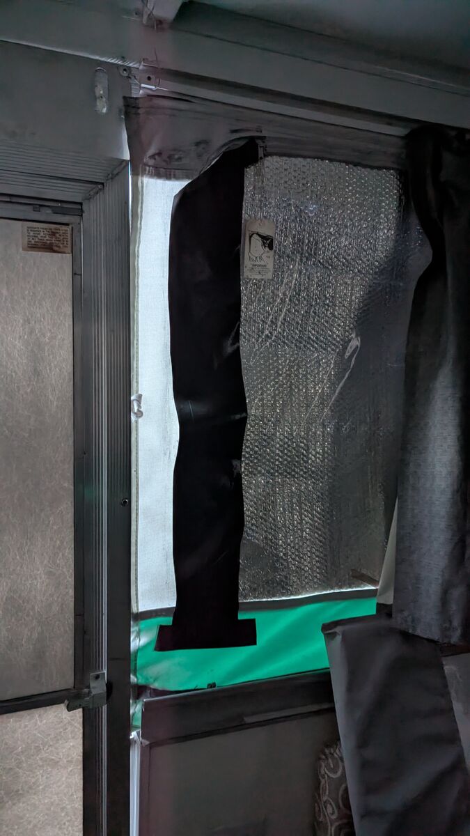 The canvas tent material and vinyl windows are in excellent condition overall with no tears or leaks – we've never had any water issues. One note: The large curbside vinyl window has partially separated from the zipper (about $450 for replacement or can be used as-is). It also has a salvaged title from previous hail damage (cosmetic only – no structural problems), but it's been rock-solid for us with zero issues.