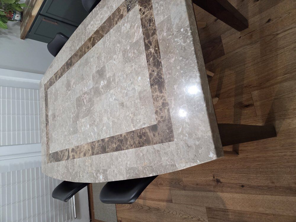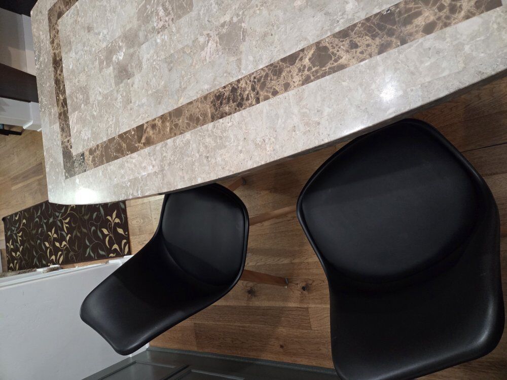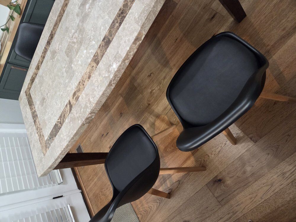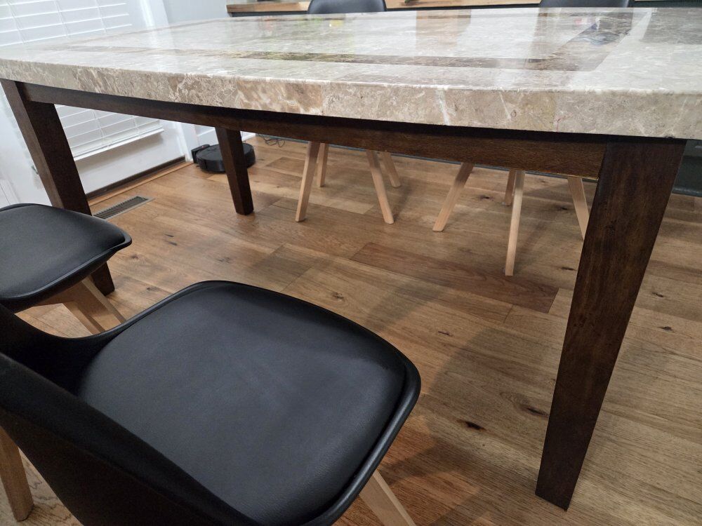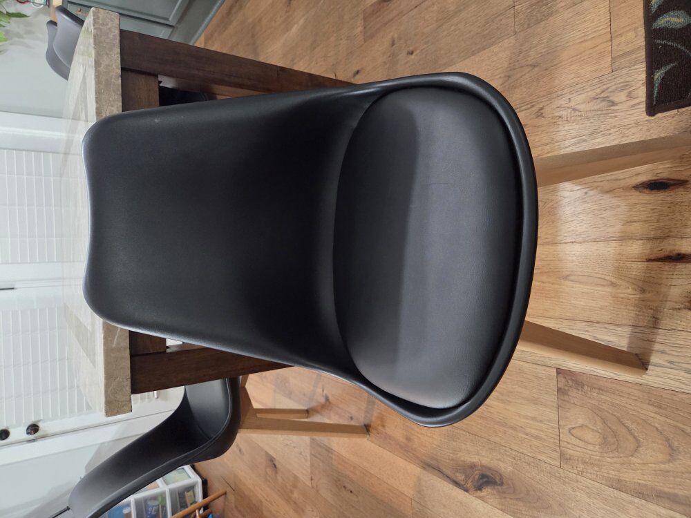 Chairs were purchased separately and aren’t an exact match, but they are easy to clean & are comfortable.