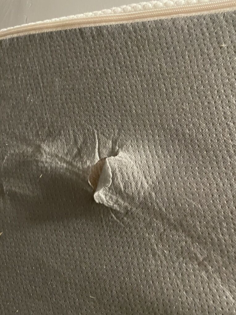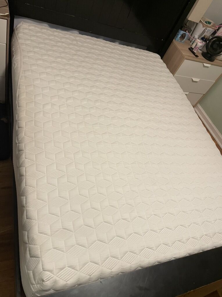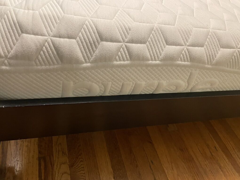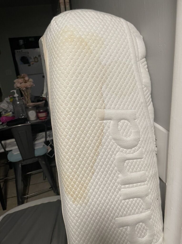 VenmoQueen purple mattress. Always had a mattress protector. Stain from Coke my hubby spilled. My husband actually didn’t like the feel of it, so we also had a tower in it. It’s in great shape.