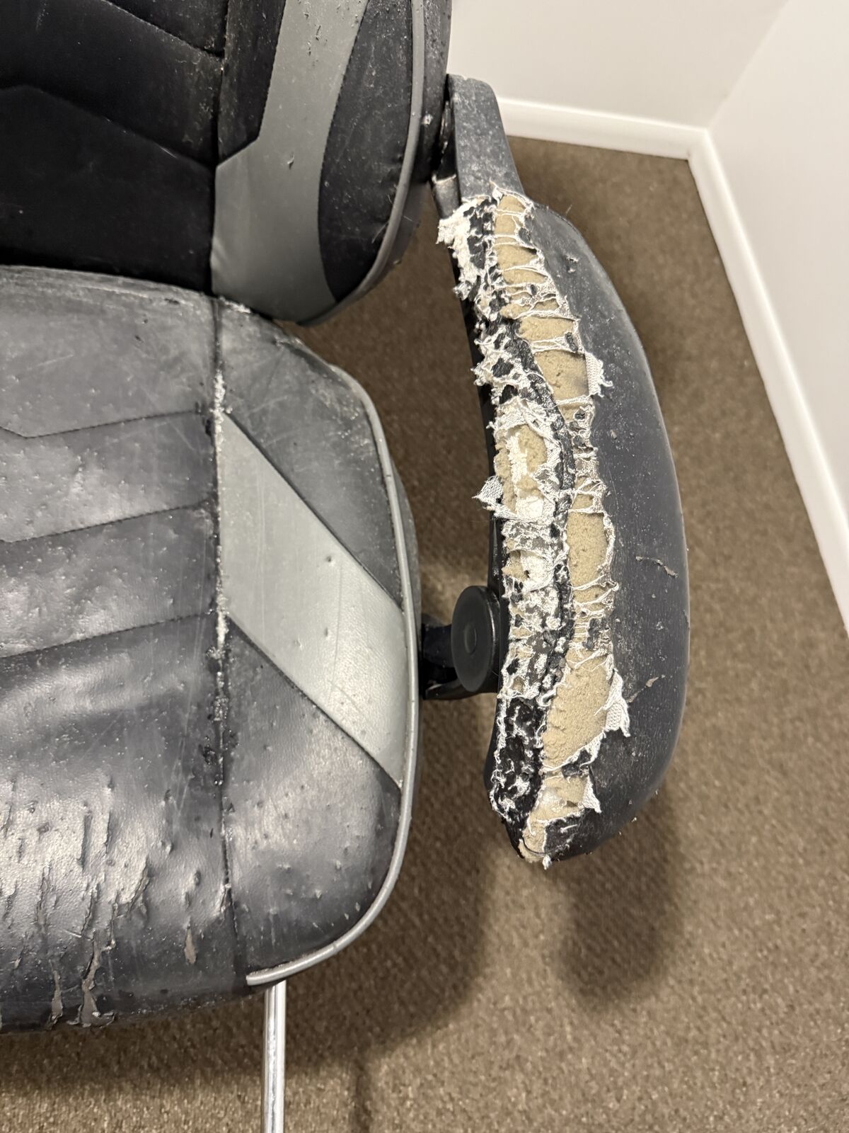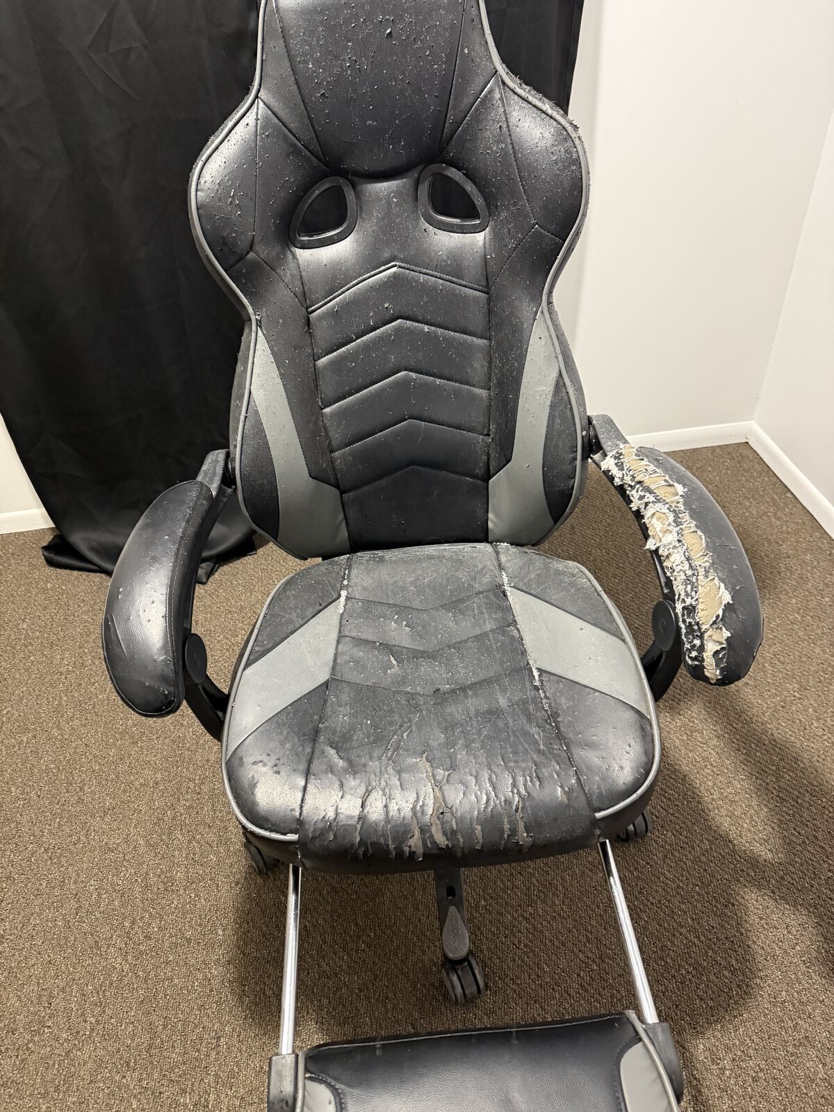 Venmodont need it anymore works just fine it has most definitly seen better days had a retractable leg rest very comfortable left arm is ruffed up as in the photos still comfy tho hopefully it can find a new home asking 15 obo