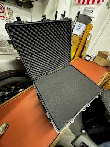 VenmoI have a XXL hard side heavy duty case with foam inserts. It is 30.1in by 25.1in by 15.35in on the inside and 33.42in by 28.38in by 17.63in on the outside. Asking $175.