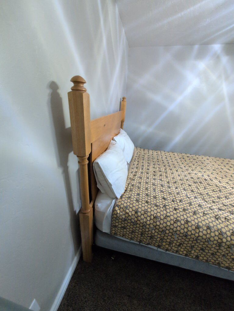 I'm selling my solid wood headboard with the box springs. like new. It's been living in the basement guest bedroom.