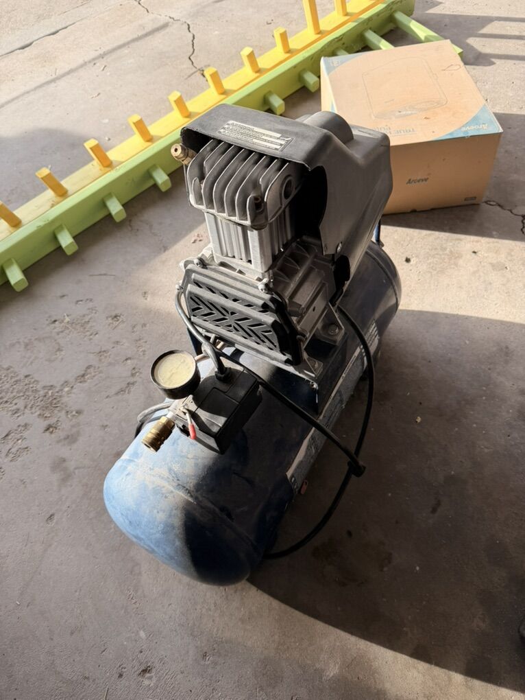 8 gallon tank. 150 psi. Alittle dusty from the garage but works great.