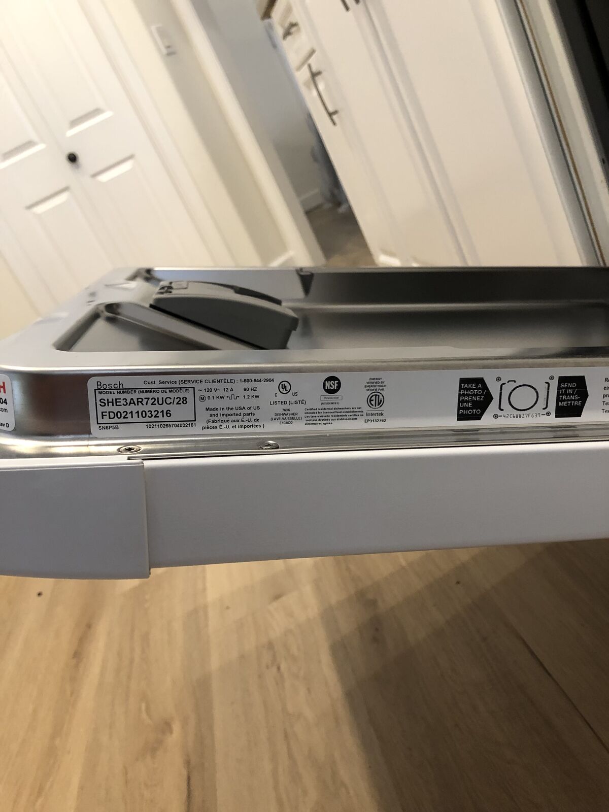 Like new condition, very clean, works great, white Bosch dishwasher.
