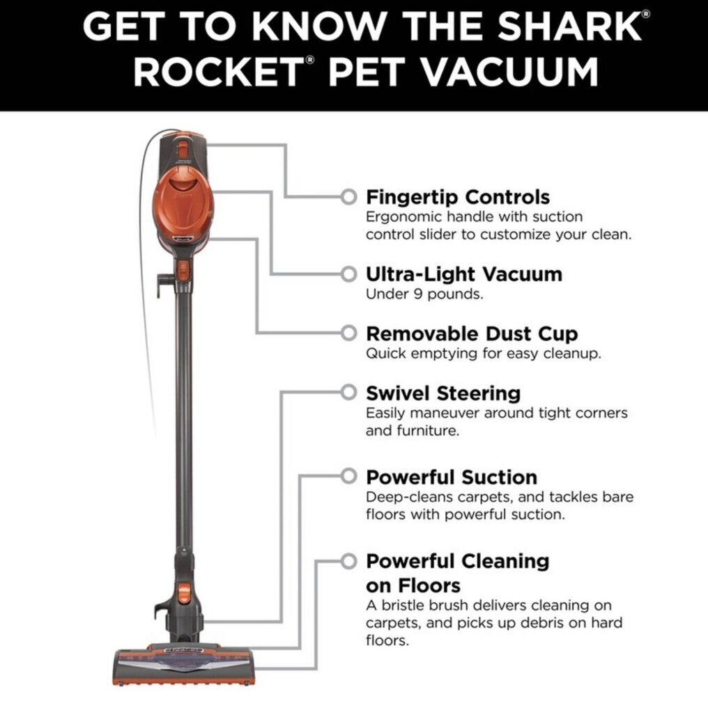 VenmoShark Rocket Ultra-Light Corded Stick Vacuum HV301 Cleaning Path Orange
