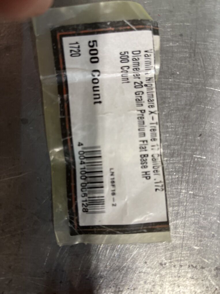 458 Hornady 20 gr V-Max. 22 cents -10%=20 cents ea. 458 for $92. 431 Remington H P 25 gr. 21 cents -10%=19 cents each. 431 for $44. 800 20 gr Varmint Nightmare X-Treme H P. 18.75 cents each-10%=$16.88/100 or 800 for $135. Total $271. Get all 1689 for $250. That’s Less than 15 cents each. Buy some or buy them all. I will ship for postage costs. Please see my other ads. Thanks, Joe.