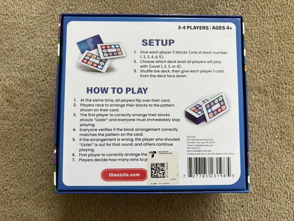 COMPLETE The Uzzle Game. Fun, fast-paced family game. 2-4 players, ages 4+. 2023. High-quality game. Complete, no missing pieces. Excellent condition. Text only. Cash or Venmo.