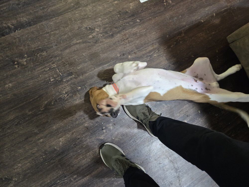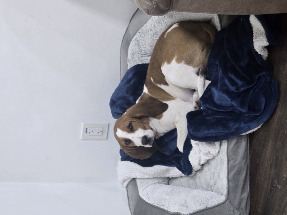 Walker/English hound. Male, dad was english 40 lbs mom was walker 35 lbs he was born September 21st 2025. Super friendly dog, havent hunted him, great with our kids, house trained using a doggy door, up to date on all of his shots including rabies. comes with cage half bag or puppy food from Costco and toys.