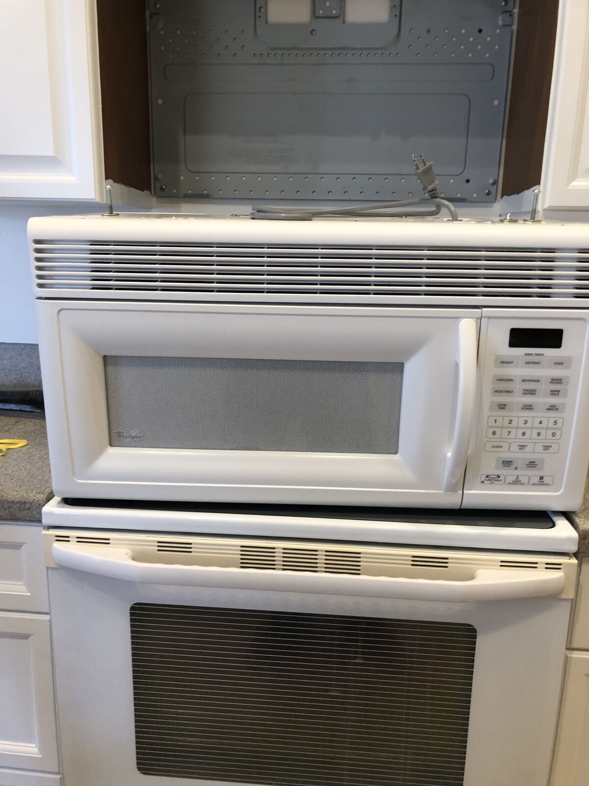 Whirlpool Microwave, white, everything works great, very clean 30" wide mounts under cabinet over stove. Stove also available that is in picture.