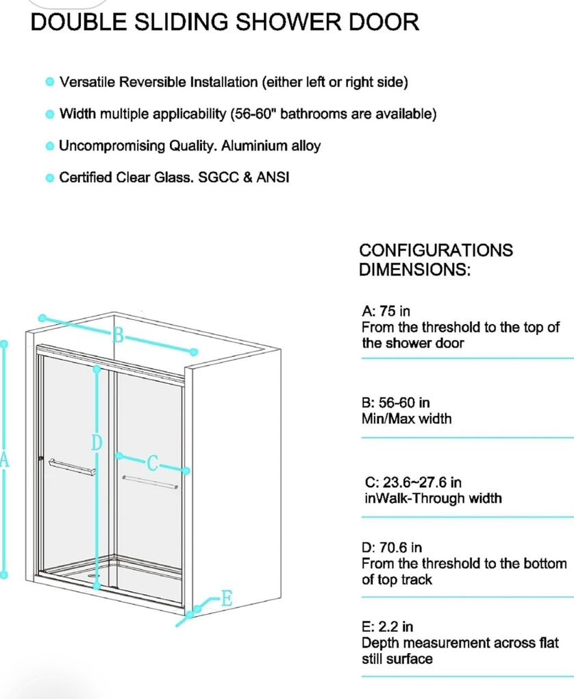 Double Sliding Shower Door, Aluminium Alloy Frame with Tempered Clear Glass, Matte Black, 56-60 W × 75 H, Modern Style, Easy Installation, 107.8 Pounds