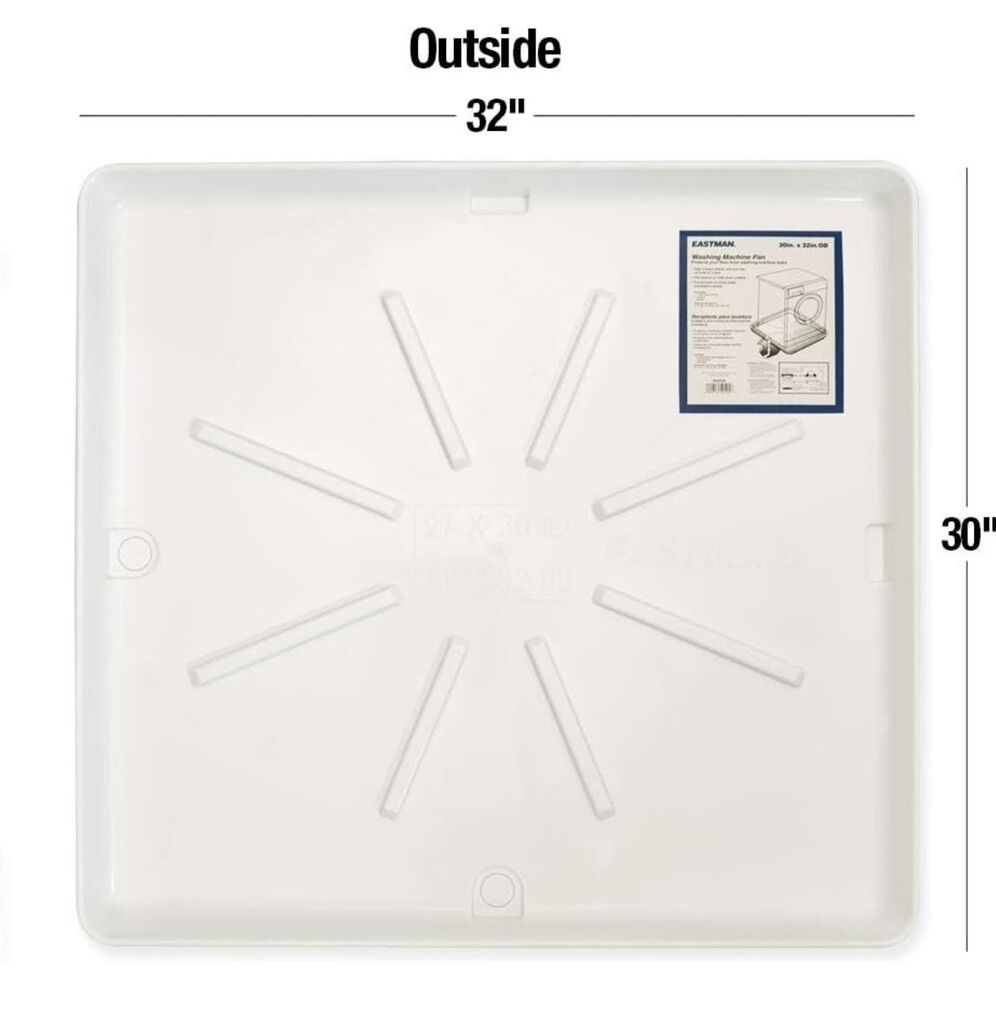 Eastman Washing Machine Drain Pan, 30 Inch × 32 Inch OD, Plastic Tray, White, 52525