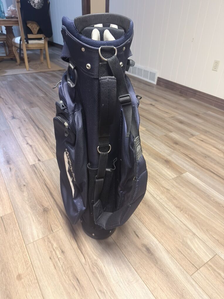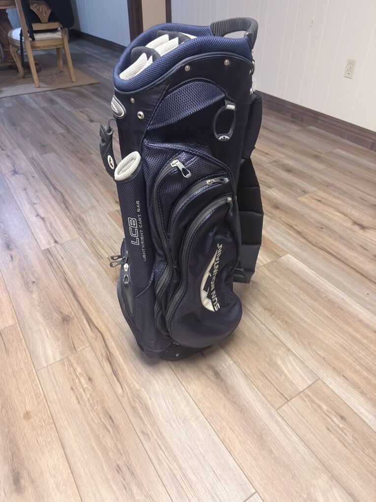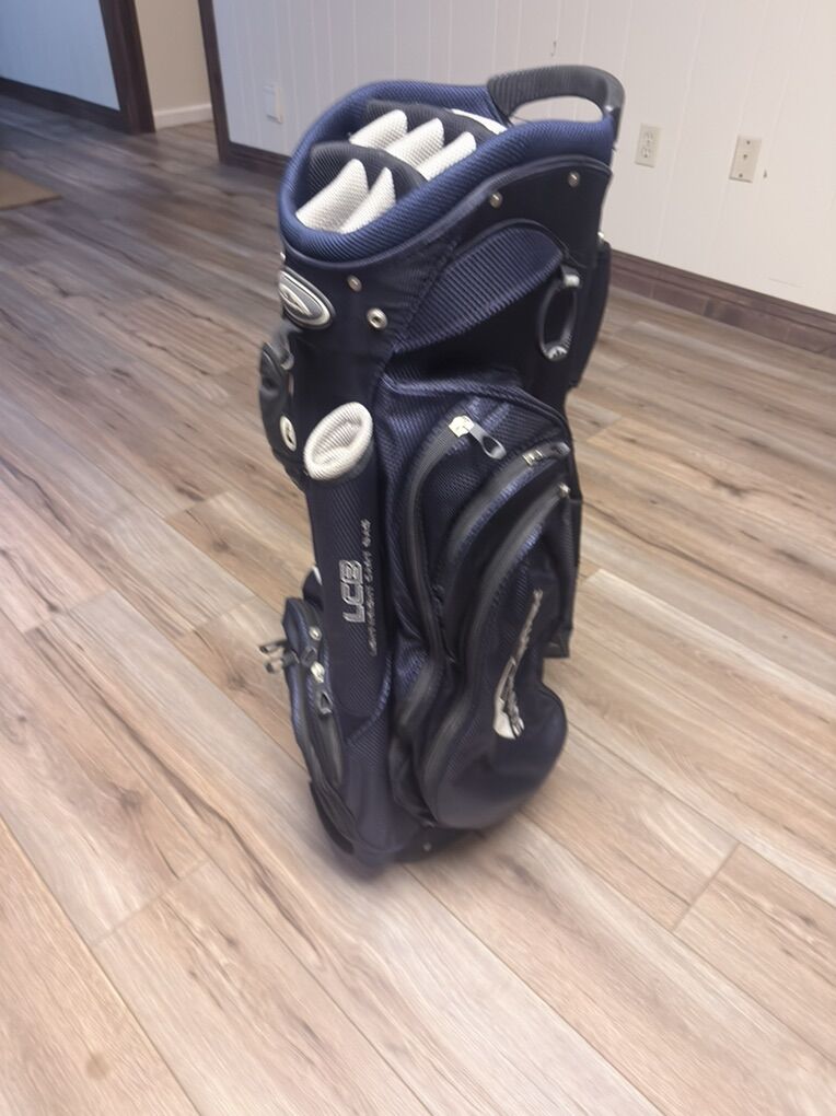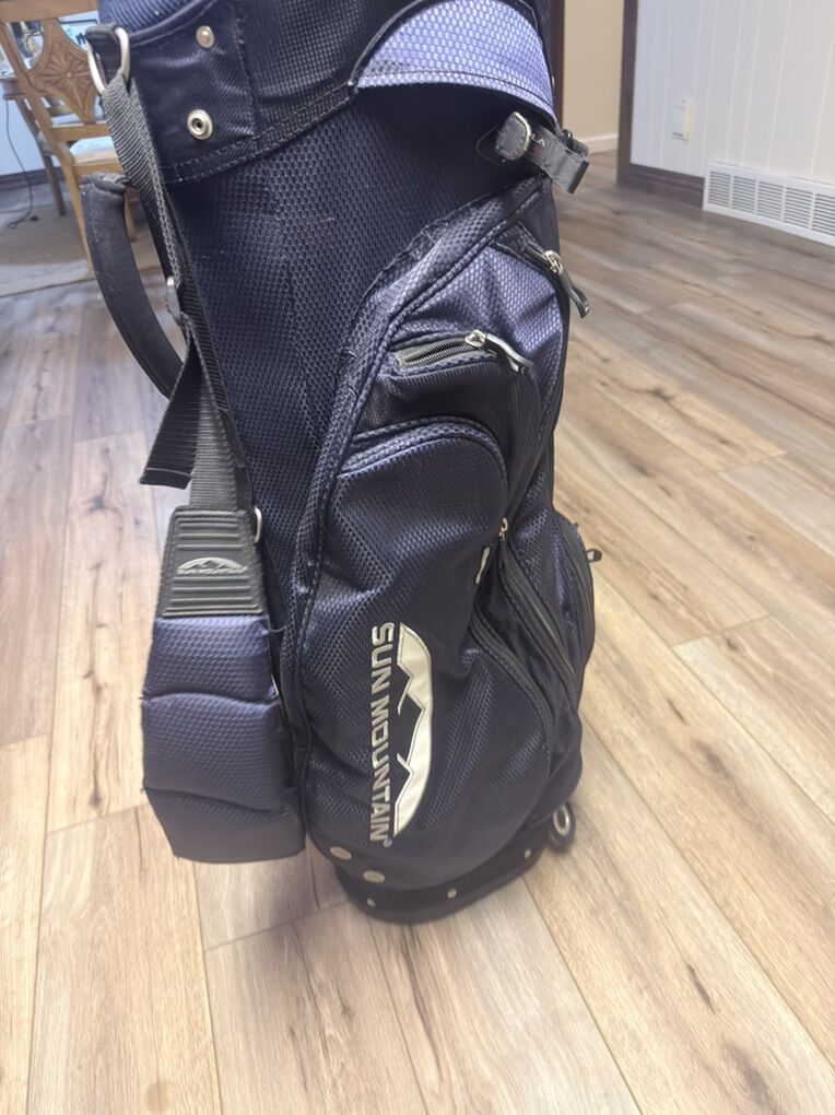 ZelleAlmost new . Been sitting for a month or so. No rips or tears on the bag. All zippers work . Great 14 divider cart bag no legs. 100 obo these go for about 200 or more at any golf store.