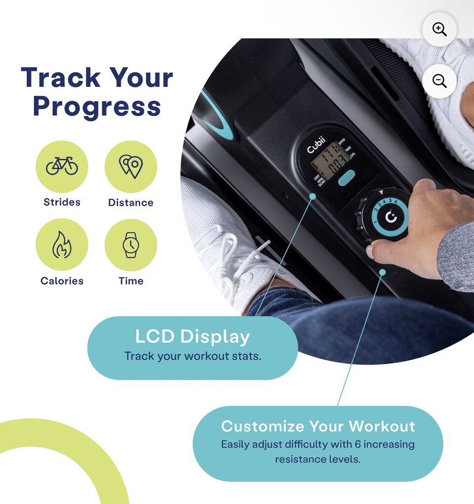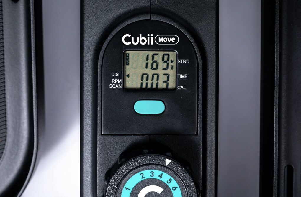 The Cubii Move Compact Seated Elliptical Trainer features an easy-to-read LCD monitor that displays your progress for easy tracking including calories burned, distance traveled, rotations per minute, and active time. Its sleek, compact design fits in front of your favorite chair or couch, and under almost any desk or table