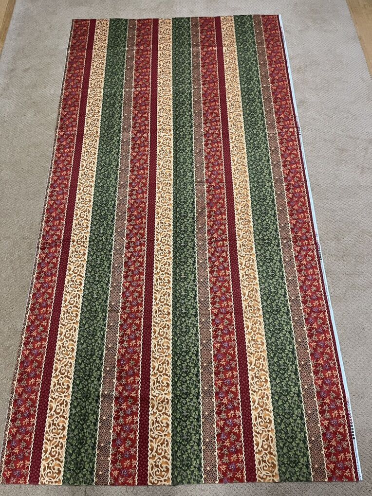 VenmoThis has golds, greens, browns, rust and even purple in the dots and leaves. There is a glitter look in the material which adds richness to it. This one piece is 2 yards and 10 inches long. The colors are darker and brighter than shown in the pictures. Must see! Price is firm.
