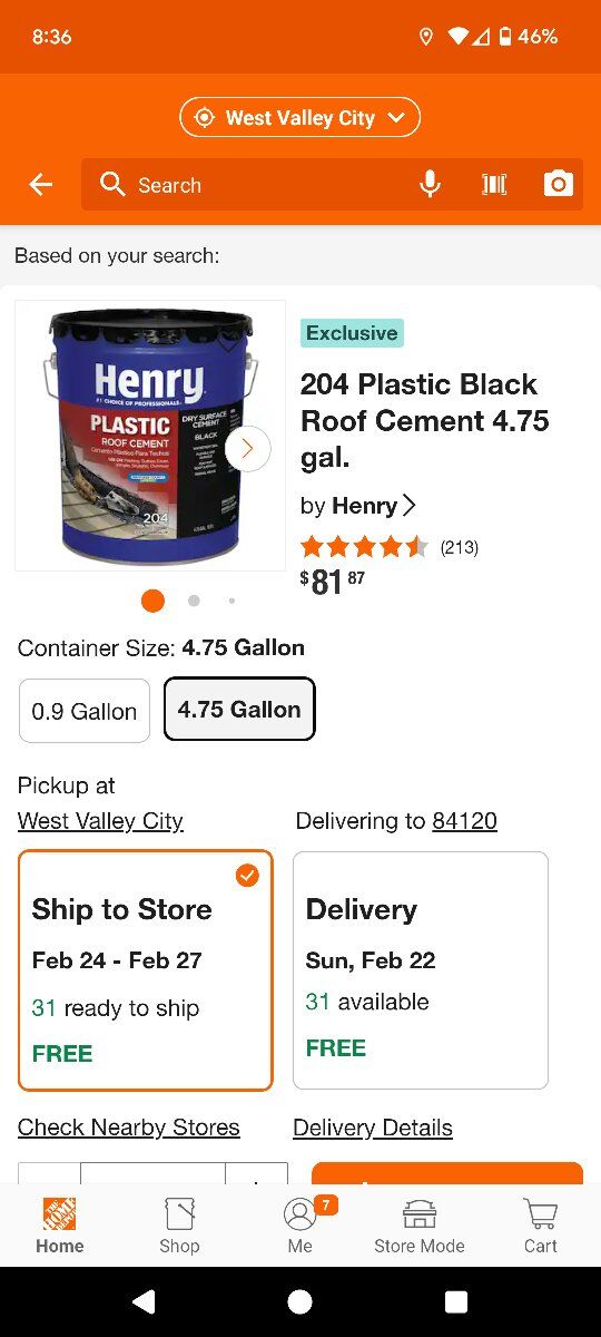 New 5 gallon bucket of roofing tar. This was right at 90 bucks from Home Depot. I don't need it anymore