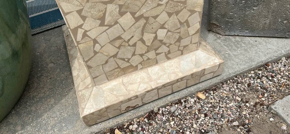 PayPalAbsolutely stunning and in new condition. Beautiful mosaic pattern. 11 in.². The base is 15 in.². The column stands 42.5 inches tall. This is an excellent piece to display anything in a home. In new condition. Made in the Philippines for Mission Furniture Los Angeles. $195