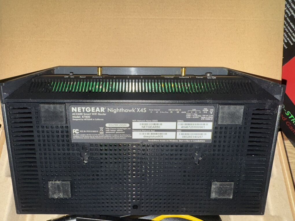 Netgear Nighthawk Gaming and Streaming Smart WiFi Router AC2600 R7800 in great condition, works fine $140 Accept only in cash