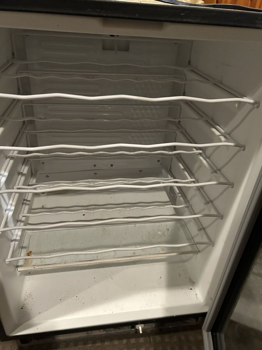 • Black finish with tinted glass door • Multiple wine racks • Free-standing installation • Clean interior, normal cosmetic wear from use