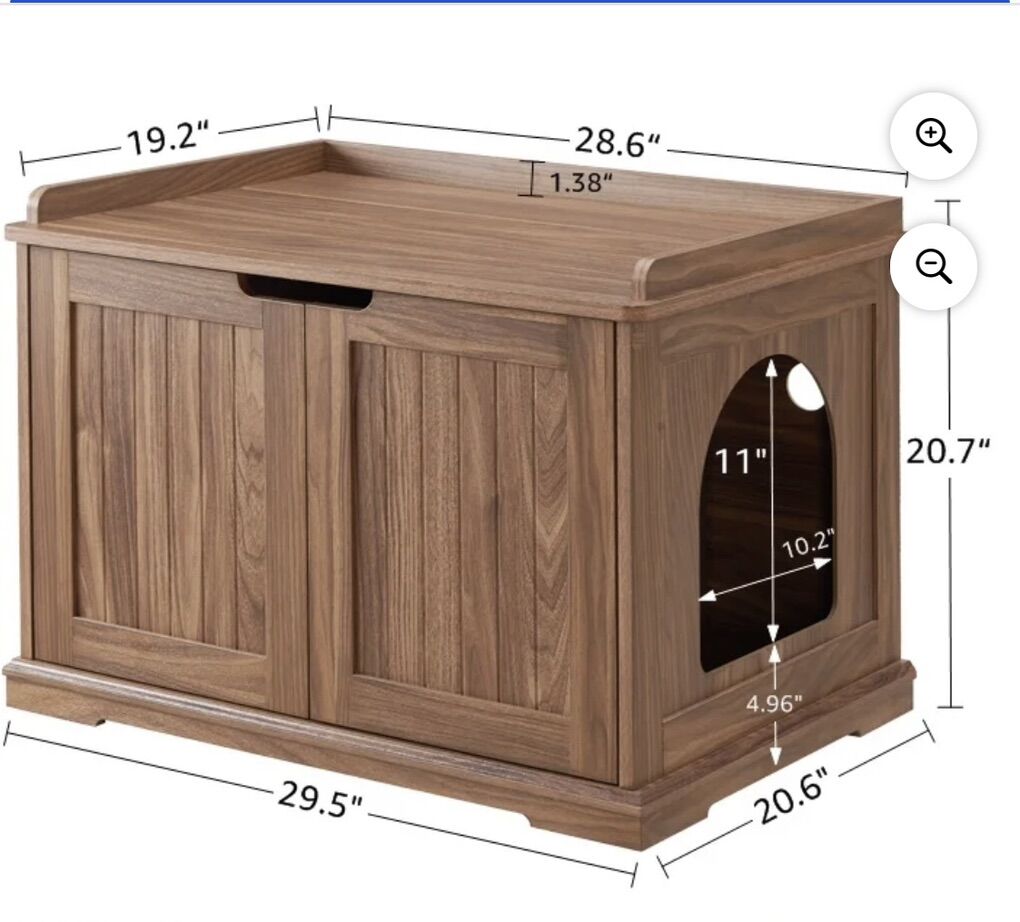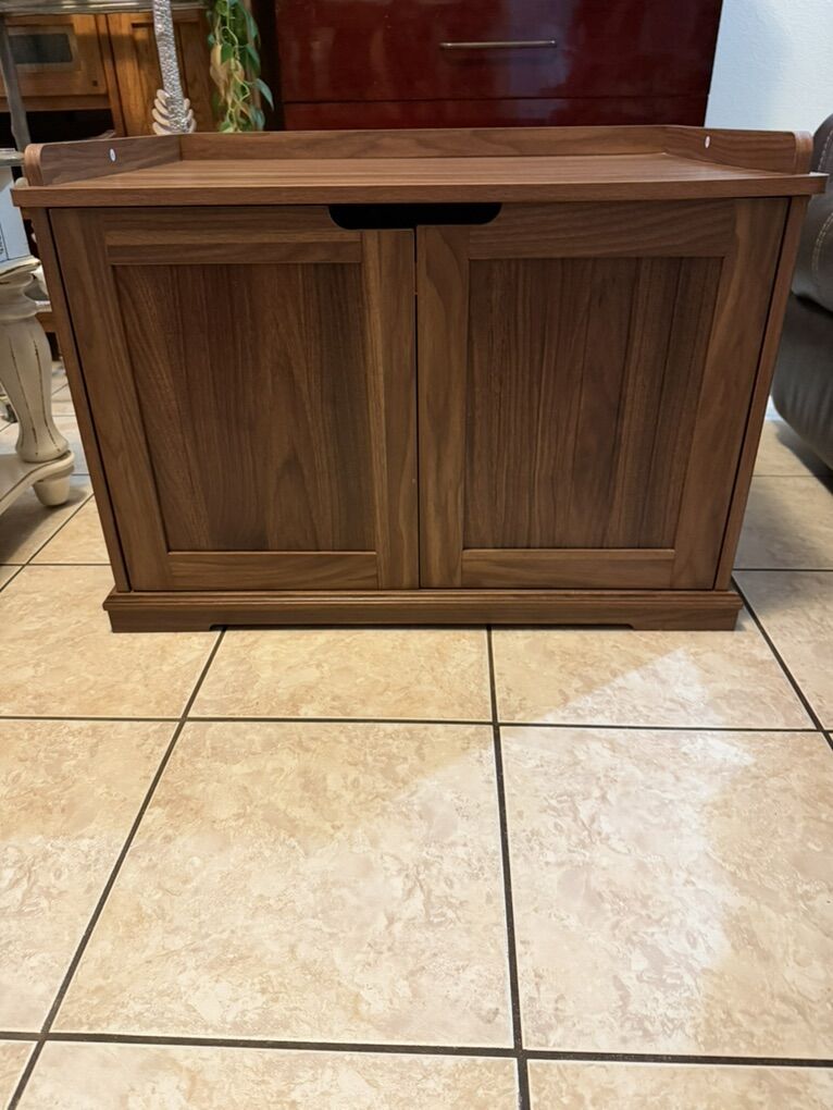 Unipaws Designer Cat Litter Box Furniture, Cat Washroom Storage Bench, Walnut